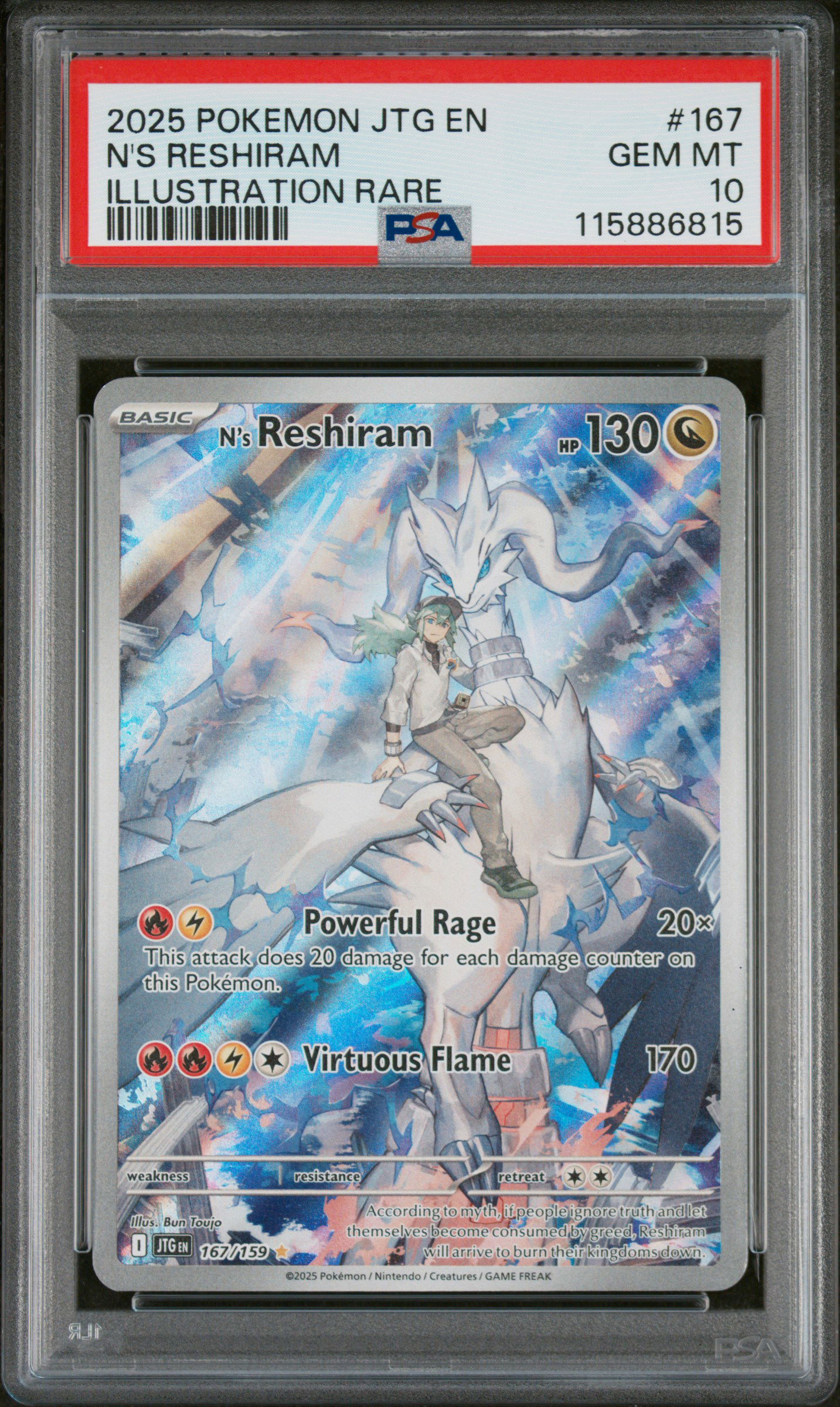 2025 Pokémon JTG N's Reshiram Illustration Rare #167 PSA 10