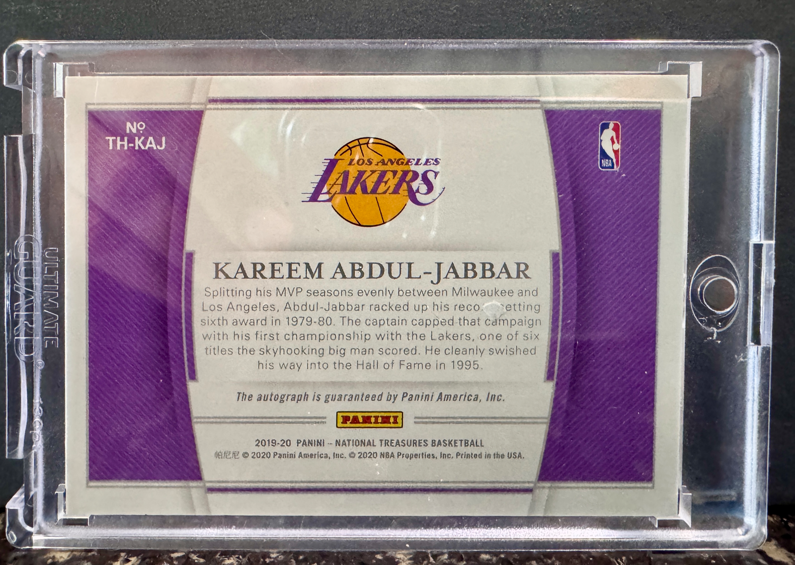 Kareem Abdul-Jabbar 2019-20 National Treasures Treasures of the Hall Auto /25 Lakers HOF