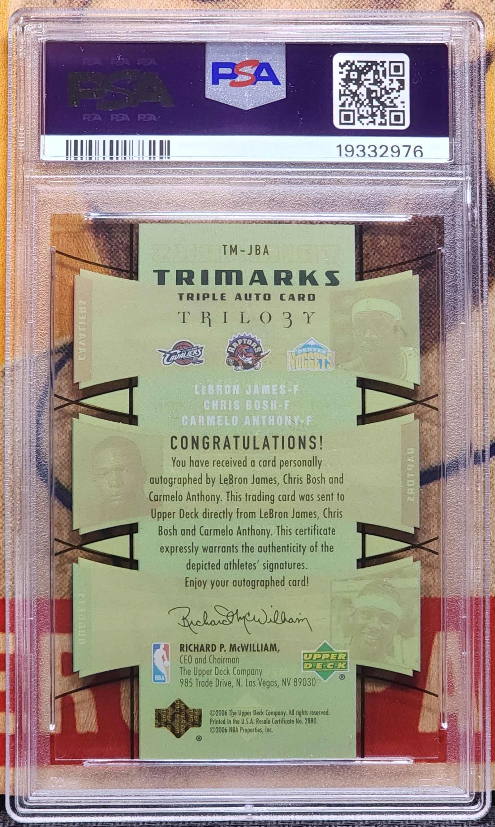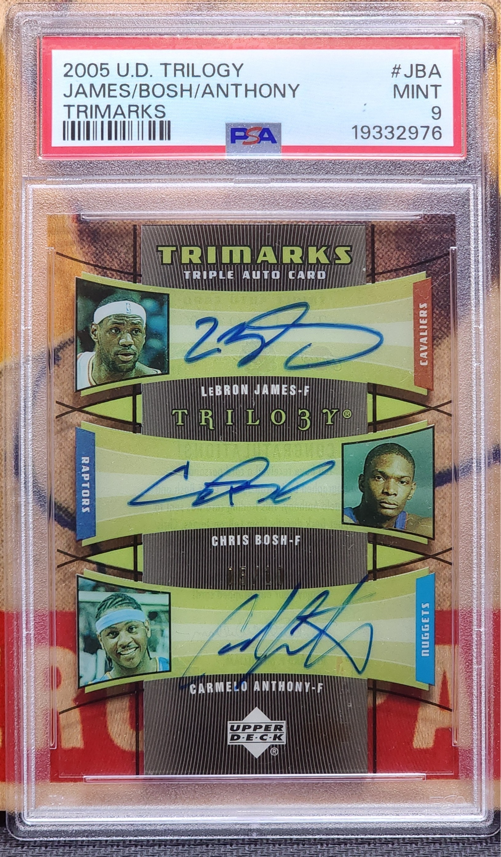 LEBRON JAMES, CARMELO ANTHONY, CHRIS BOSH 2005 UD Trilogy Trimarks TRIPLE AUTO AUTOGRAPH 05/10 PSA 9 MINT CONDITION!
