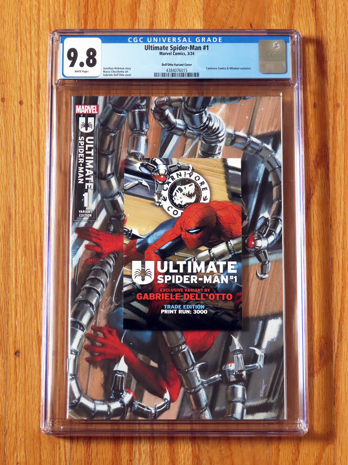 Limited store exclusive! 🚨 ULTIMATE SPIDER-MAN 1 DEL'OTTO VARIANT COVER + Carnivore Comics & Whatnot exclusive + Limited to 3000 copies + Certificate of print run + Variant cover by Gabriele Del'Otto + CGC 9.8 & White Pages + Brand new, uncirculated slab