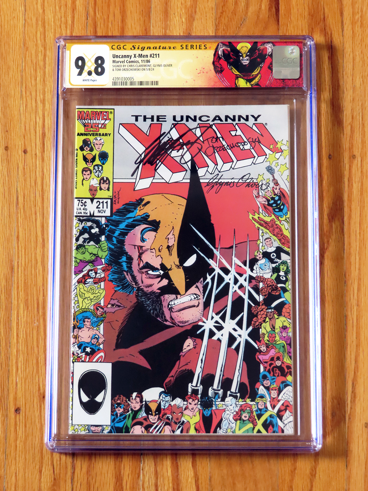 🚨 3x signed iconic Romita Jr cover! 🚨 UNCANNY X-MEN 211 + Signed by Chris Claremont, Glynis Oliver, & Tom Orzechowski on 5/8/24 + Custom Wolverine label + CGC 9.8 & White Pages + Brand new, uncirculated slab