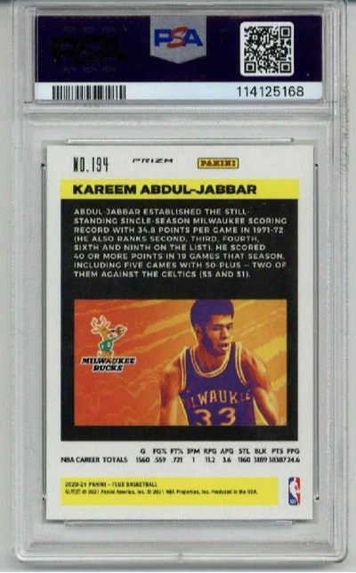 2020 PANINI FLUX GREEN PULSAR #194 KAREEM ABDUL JABBAR PSA 10 LOW POP