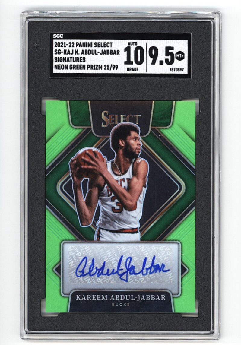 2021-22 Select Kareem Abdul-Jabbar Signatures Neon Green Prizm Auto /99