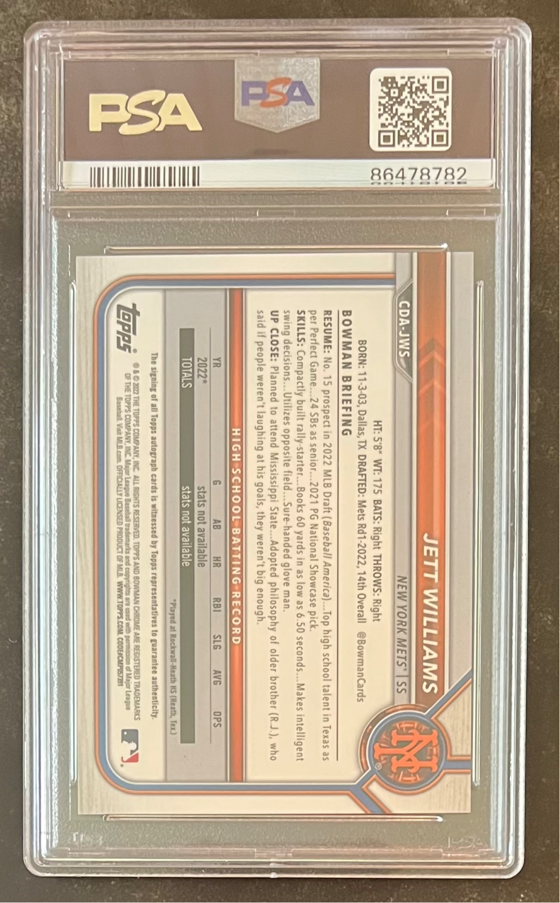 2022 Bowman Chrome Jett Williams Black White Raywave Reffractor Auto PSA 10