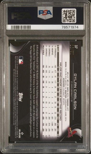 2022 Topps Chrome Black Dylan Carlson Gold Refractor PSA 10