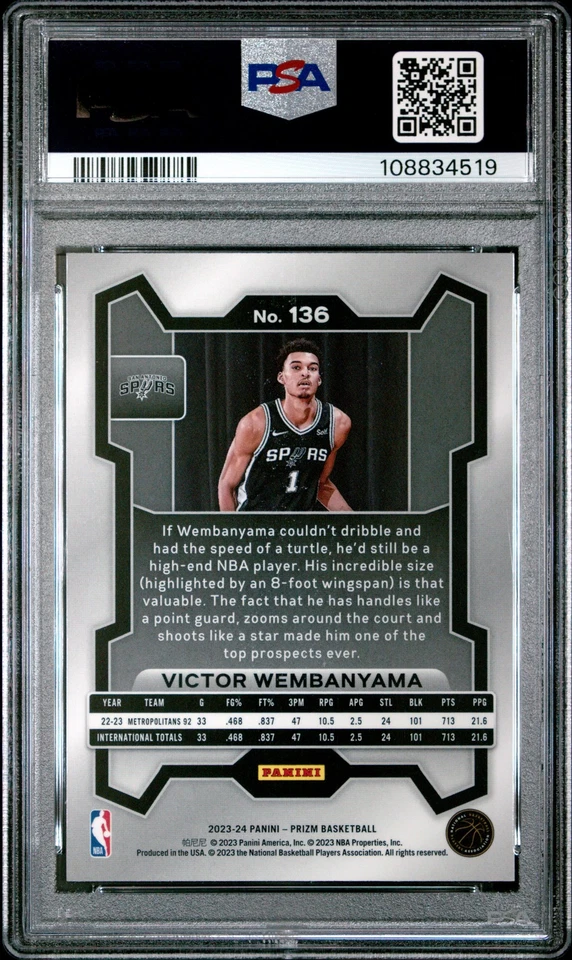2023 Panini Prizm Victor Wembanyama #136 PSA 10