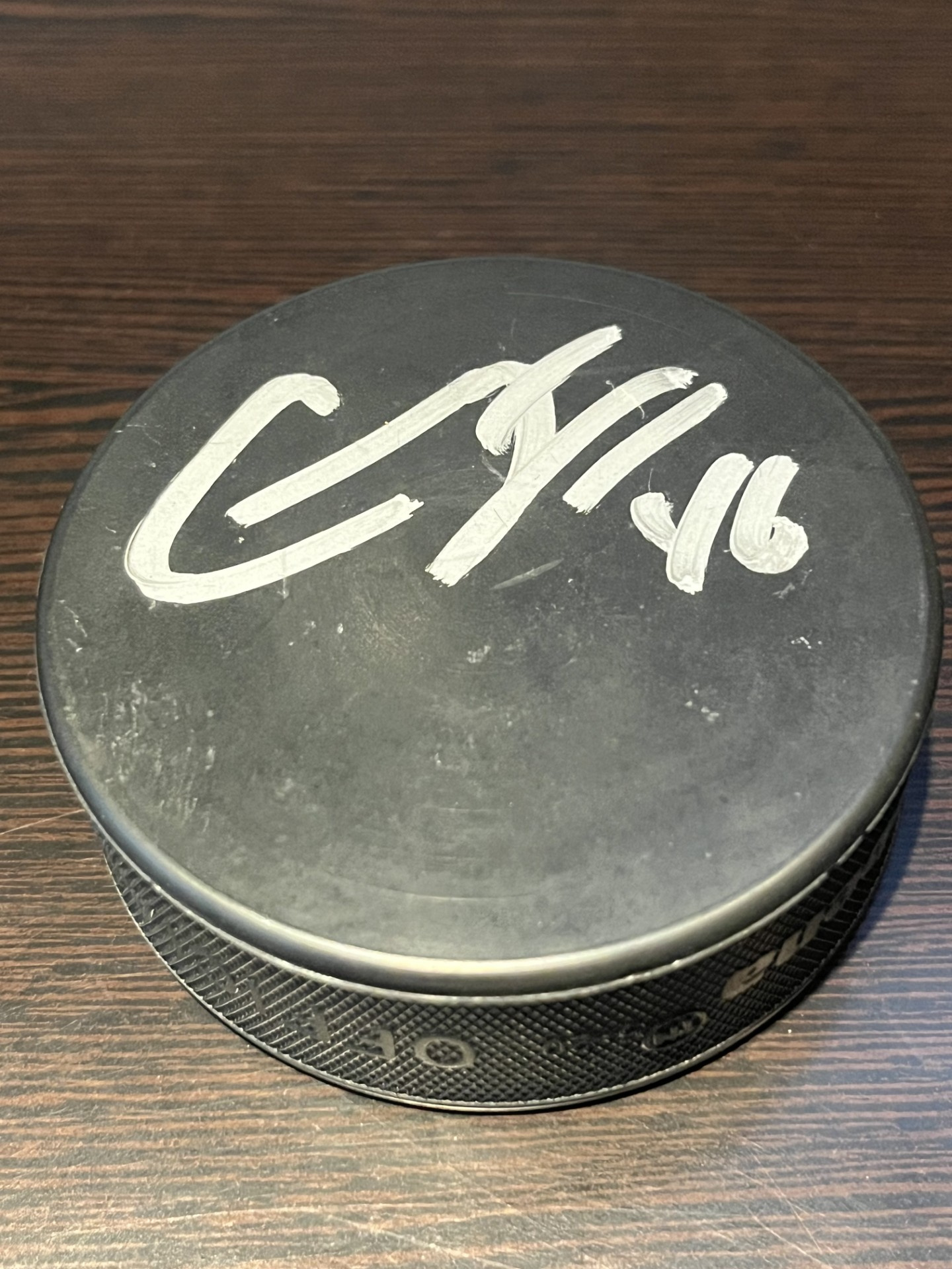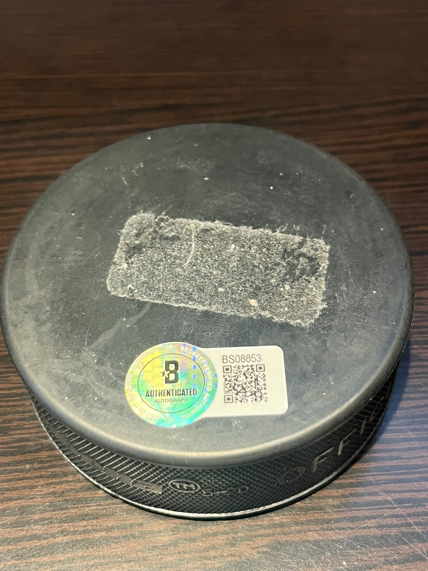 You are bidding on an authentic, in-person signed puck of 2x Cup winner Colin Fraser. Colin personally signed this puck in silver paint pen. It is authenticated by Beckett (BAS).