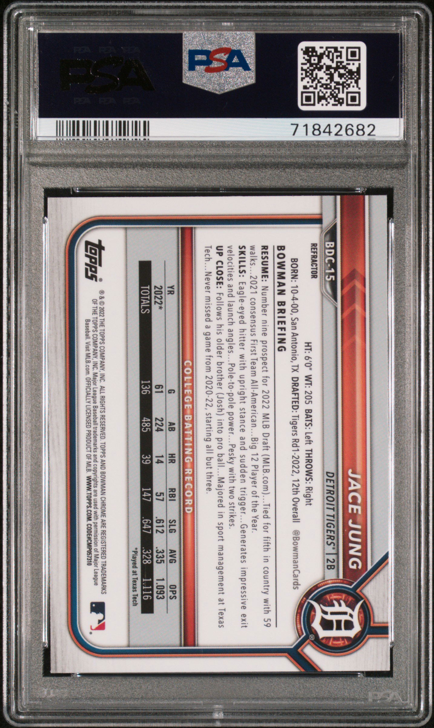 2022 Bowman Chrome #BDC-15 Jace Jung Refractor PSA 10