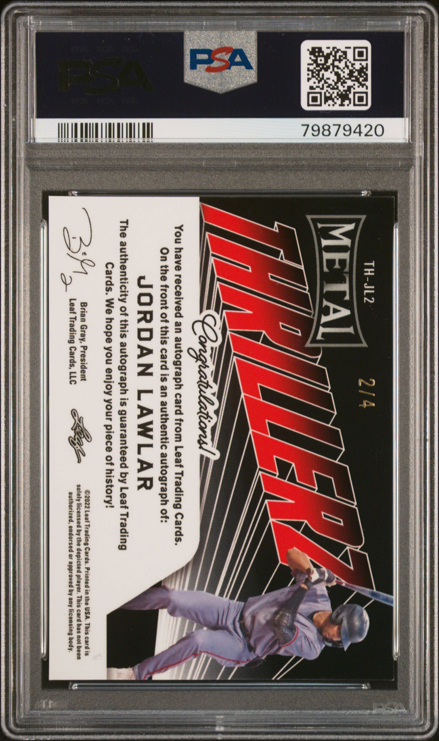 2022 Leaf Metal Thrillerz Autographs Blue Mojo Jordan Lawlar 2/4 PSA 9