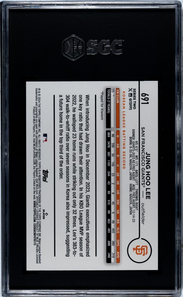 2024 Topps #691 Jung Hoo Lee SGC 8.5