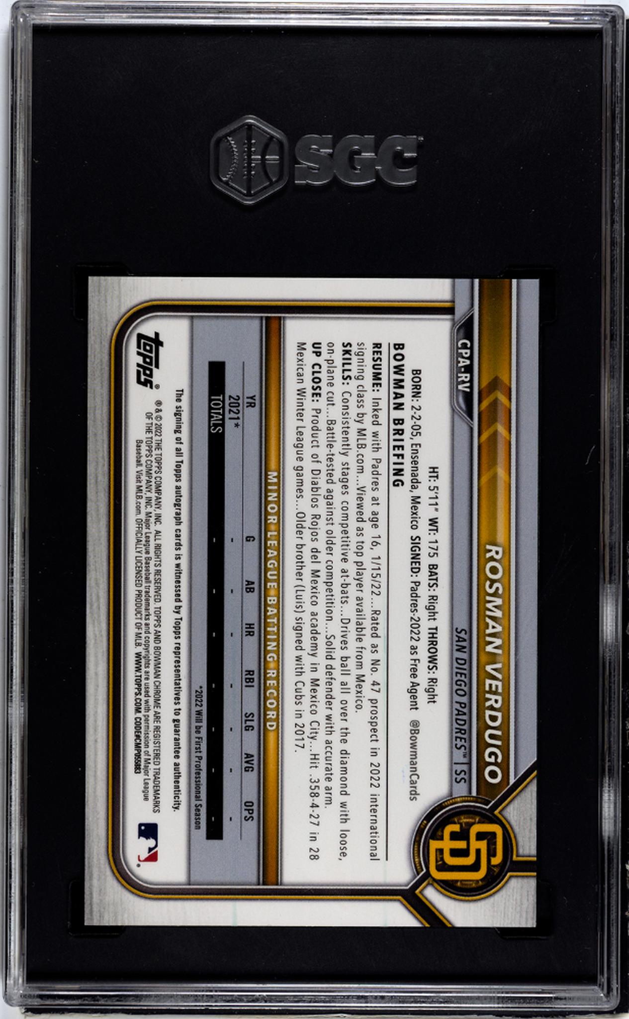 2022 Bowman Chrome #CPA-RV Rosman Verdugo SGC 9.5