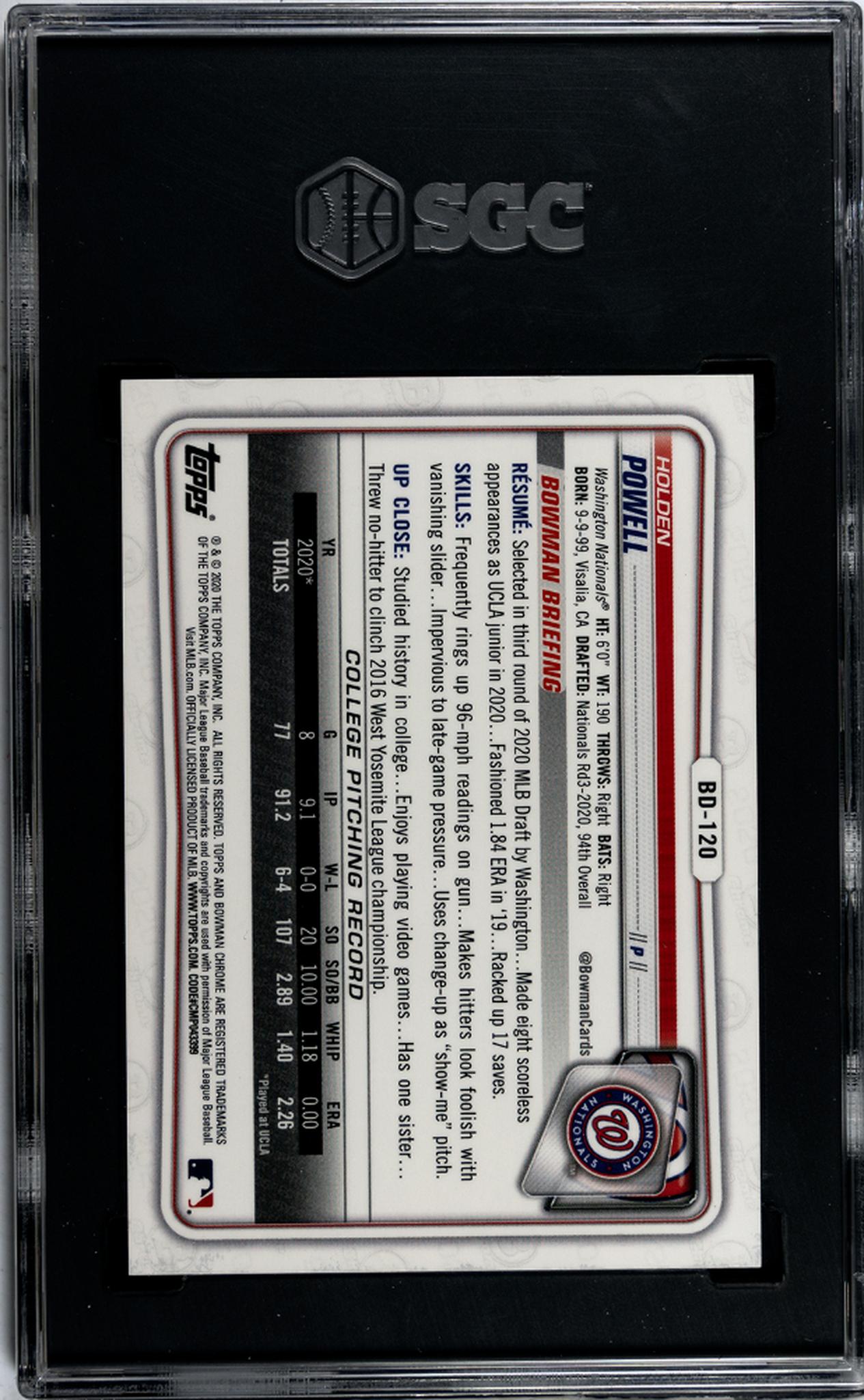 2020 Bowman Chrome #BD-120 Holden Powell Draft Sapphire /99 SGC 10