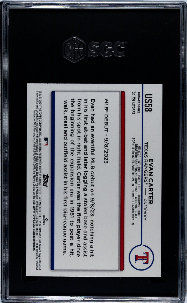 2024 Topps Update Royal Blue Evan Carter #US58 RC SGC 10