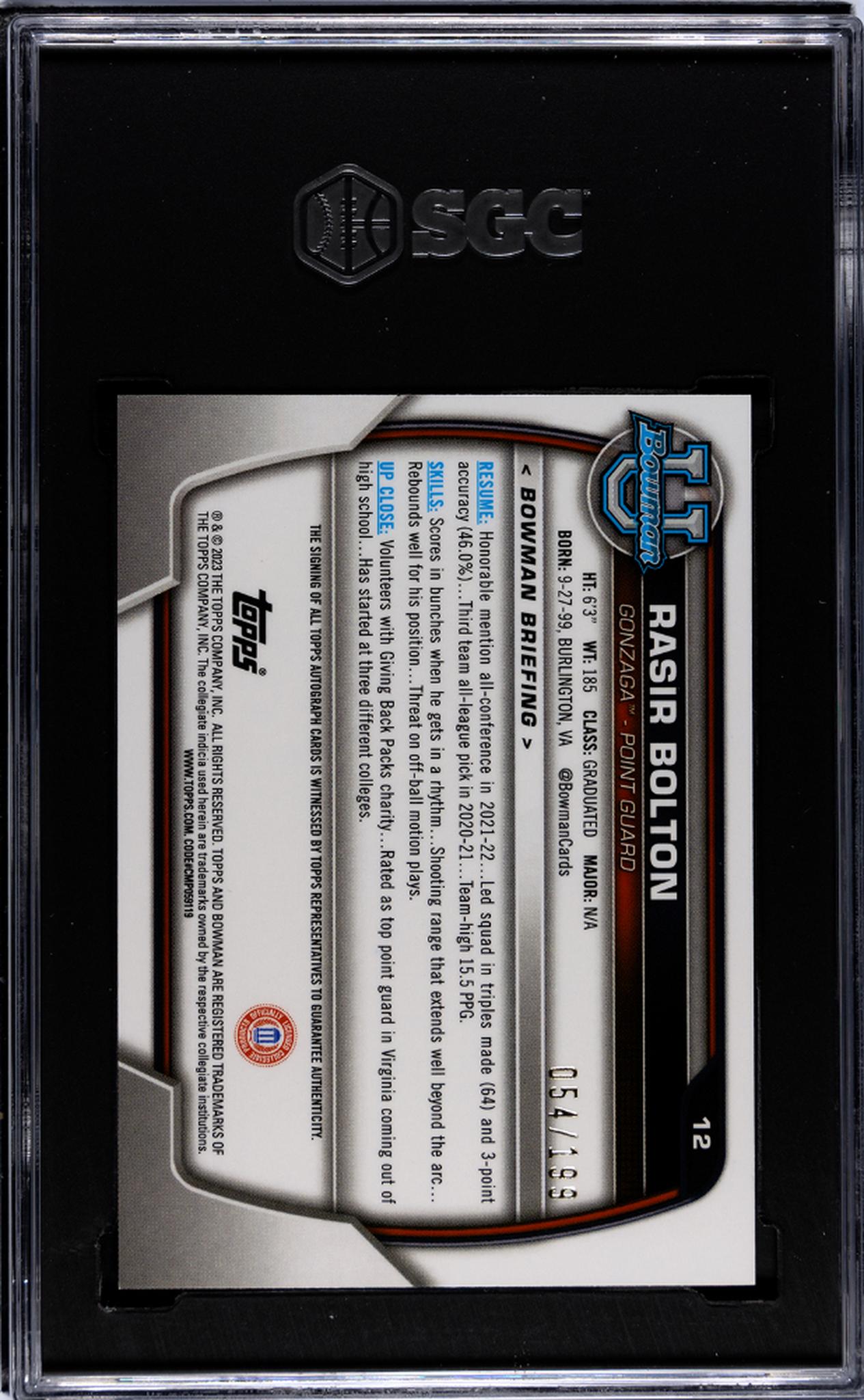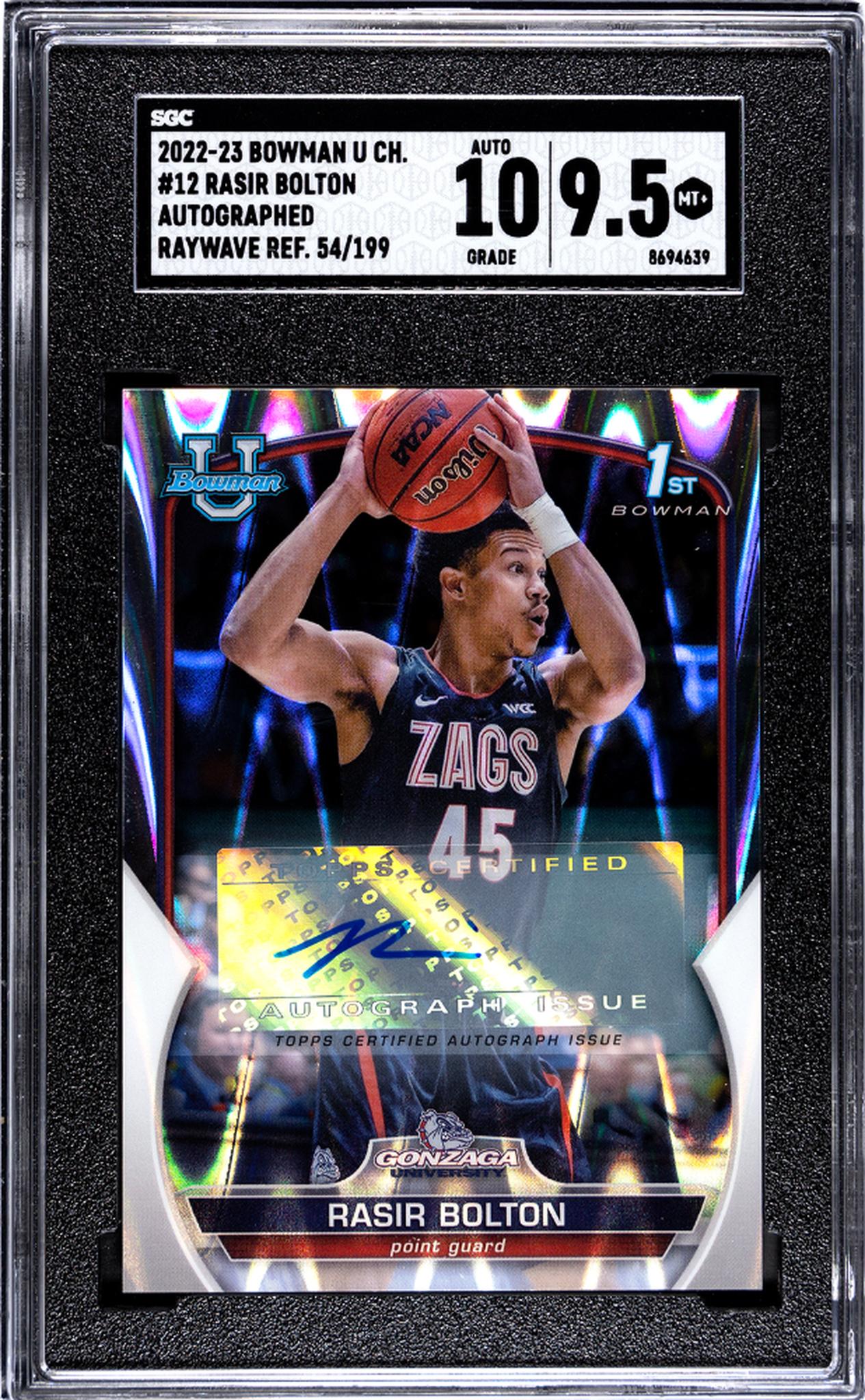 2022-23 Bowman University Chrome #12 Rasir Bolton Auto. RayWave Ref. 54/199 SGC 9.5