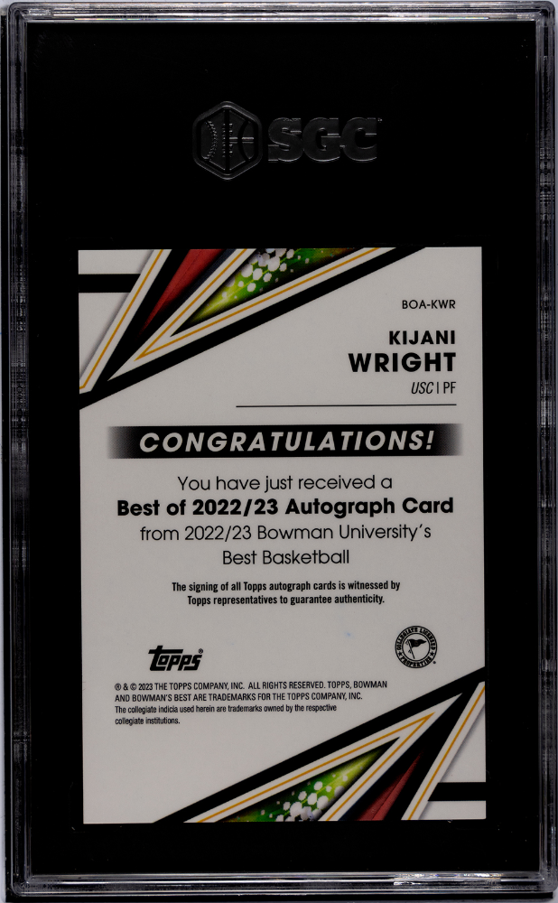 2022 Bowman U Best Autograph Kijani Wright #BOA-KWR SGC 9.5 Auto 10