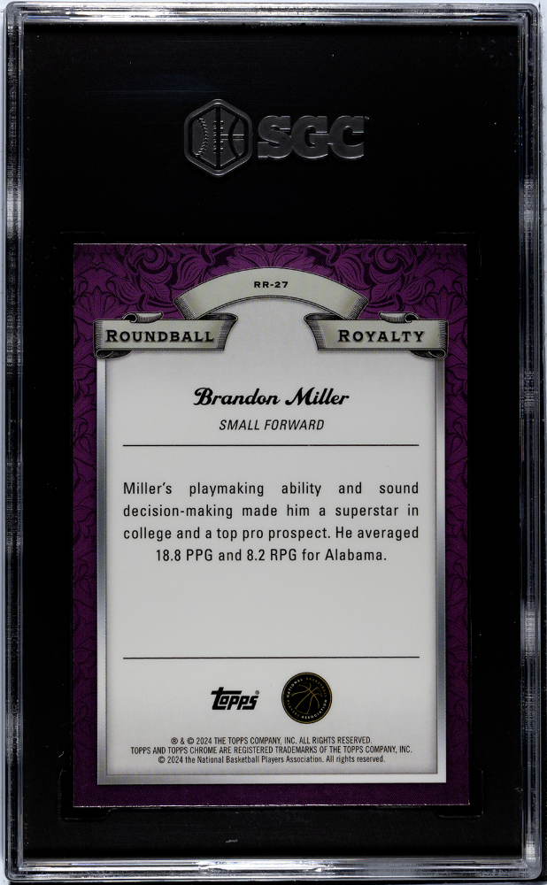 2023-24 Topps Chrome Roundball Royalty Pink Brandon Miller #RR-27 RC SGC 9