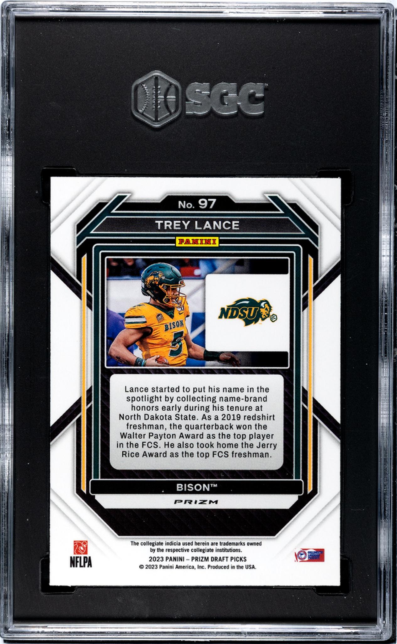2023 Panini Prizm Draft Picks Gold Ice Prizm Trey Lance #97 SGC 10
