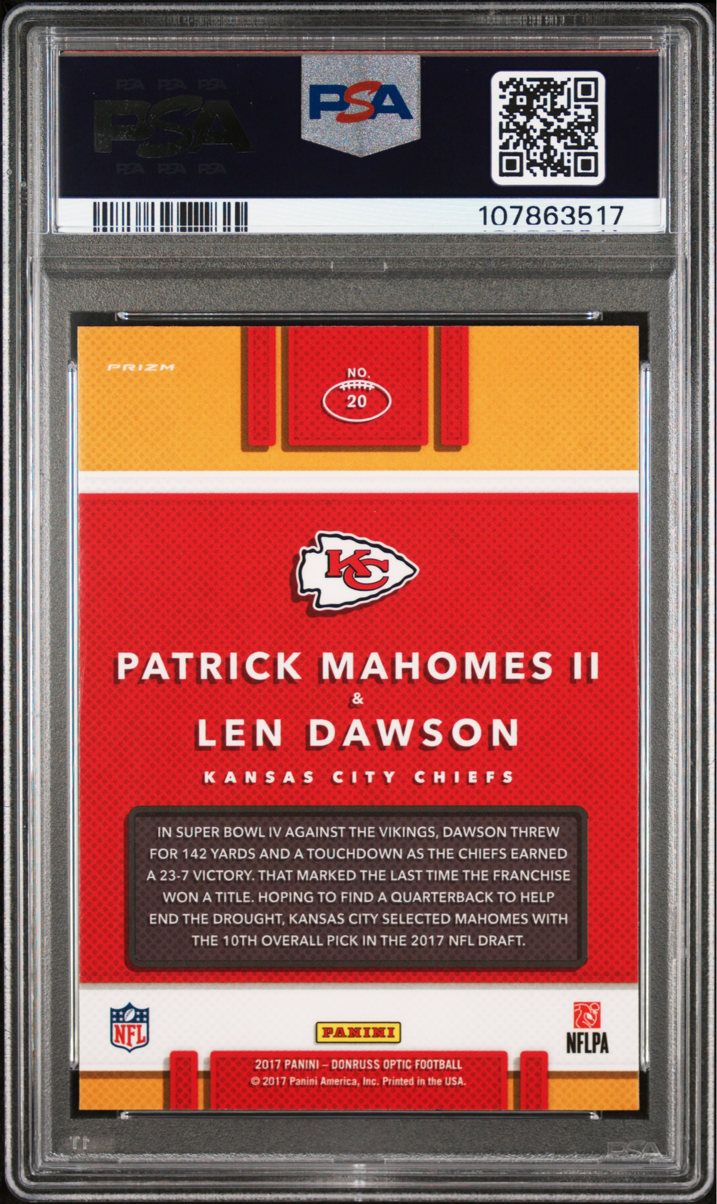 2017 Donruss Optic Illusions Patrick Mahomes Rookie #20 PSA 10 - RARE Rookie