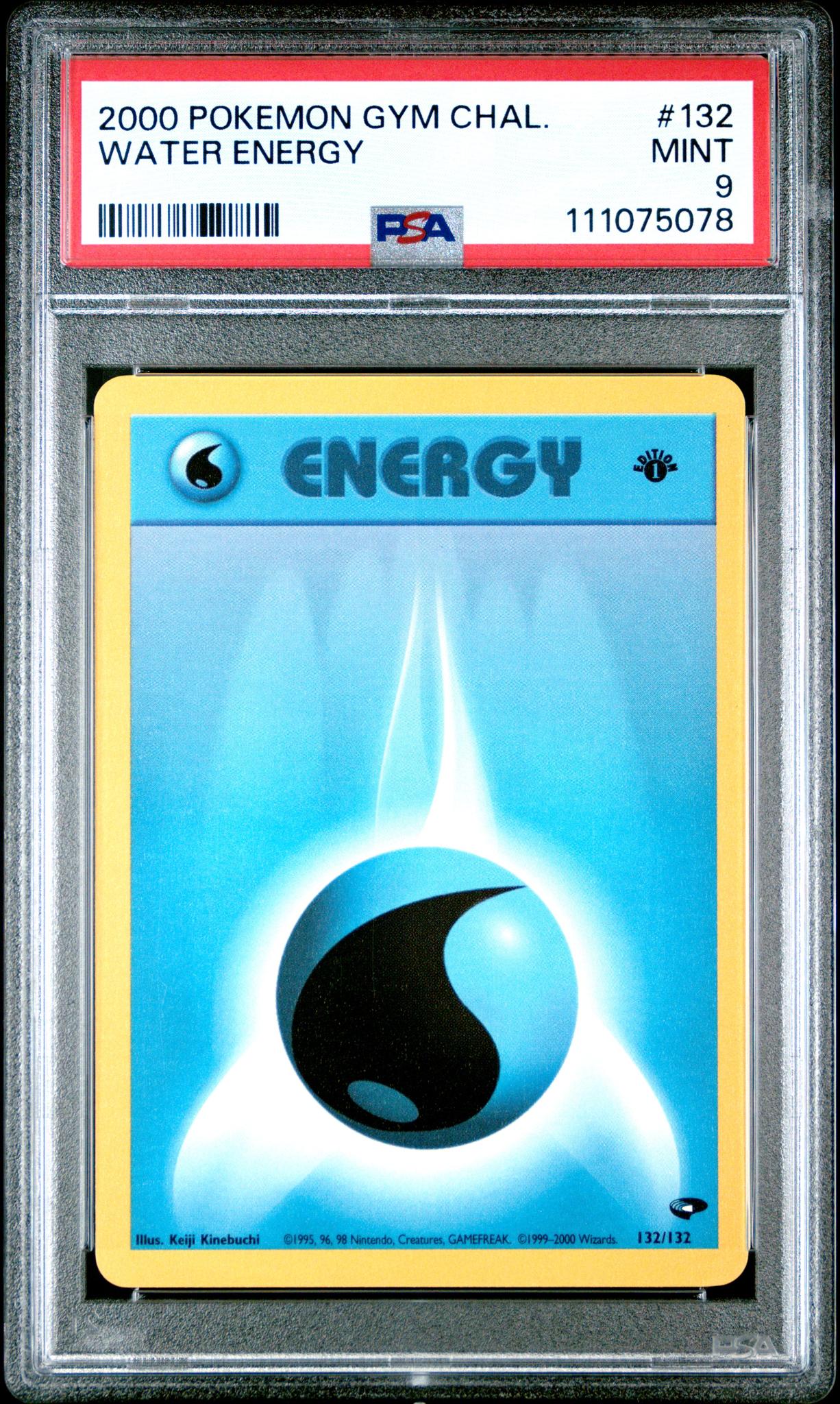 Take a step back in time to the year 2000 with this mint-condition Water Energy card from the Pokemon Gym Challenge set! This card, produced by the renowned Wizards of the Coast, is an incredible find for any Pokemon enthusiast or card collector. Its impeccable condition has earned it a PSA grade of 9, a testament to its high-quality preservation over the years. This Water Energy card, number 132/132, is a standout piece from the Pokemon Gym Challenge set. Its vibrant design beautifully encapsulates the power of Water Energy in the Pokemon universe, making it a crucial addition to any Pokemon card set. Though it's not a rookie card or autographed, its value lies in its pristine condition and its significance in the Pokemon Gym Challenge set. This card, being professionally graded, assures you of its worth and authenticity. It's a tangible piece of Pokemon history that harkens back to the early days of this beloved franchise. Whether you're a seasoned collector, a fan of the Pokemon series, or simply love the thrill of owning a piece of nostalgia, this Water Energy card is an excellent addition to your collection. While it doesn't contain any special memorabilia, its value lies in its meritorious condition and its place in the Pokemon Gym Challenge set. This iconic Water Energy card is more than just a collector's item; it's a piece of Pokemon history preserved in mint condition for you to cherish. A true gem for any Pokemon enthusiast.