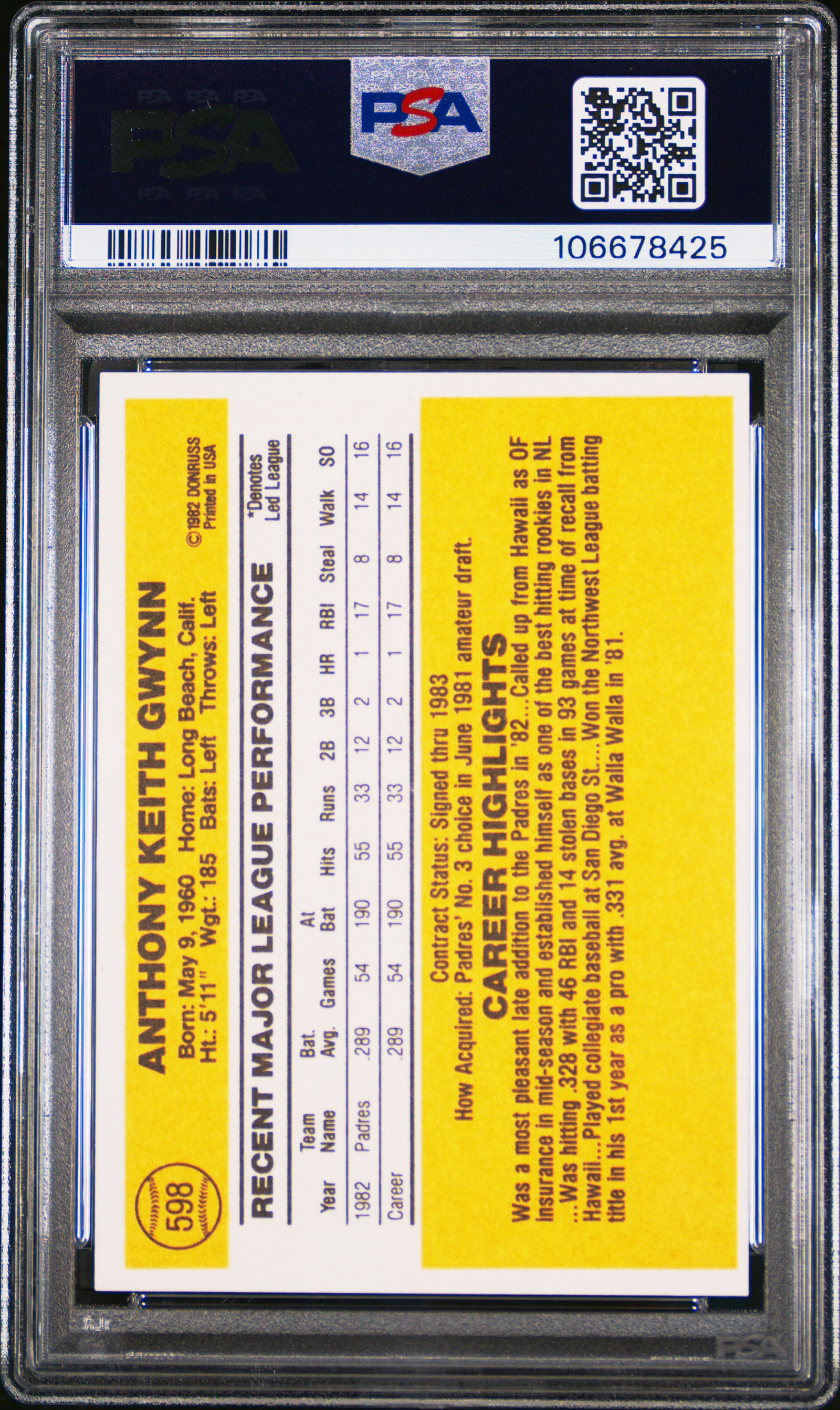 1983 Donruss Tony Gwynn #598 Rookie RC PSA 9