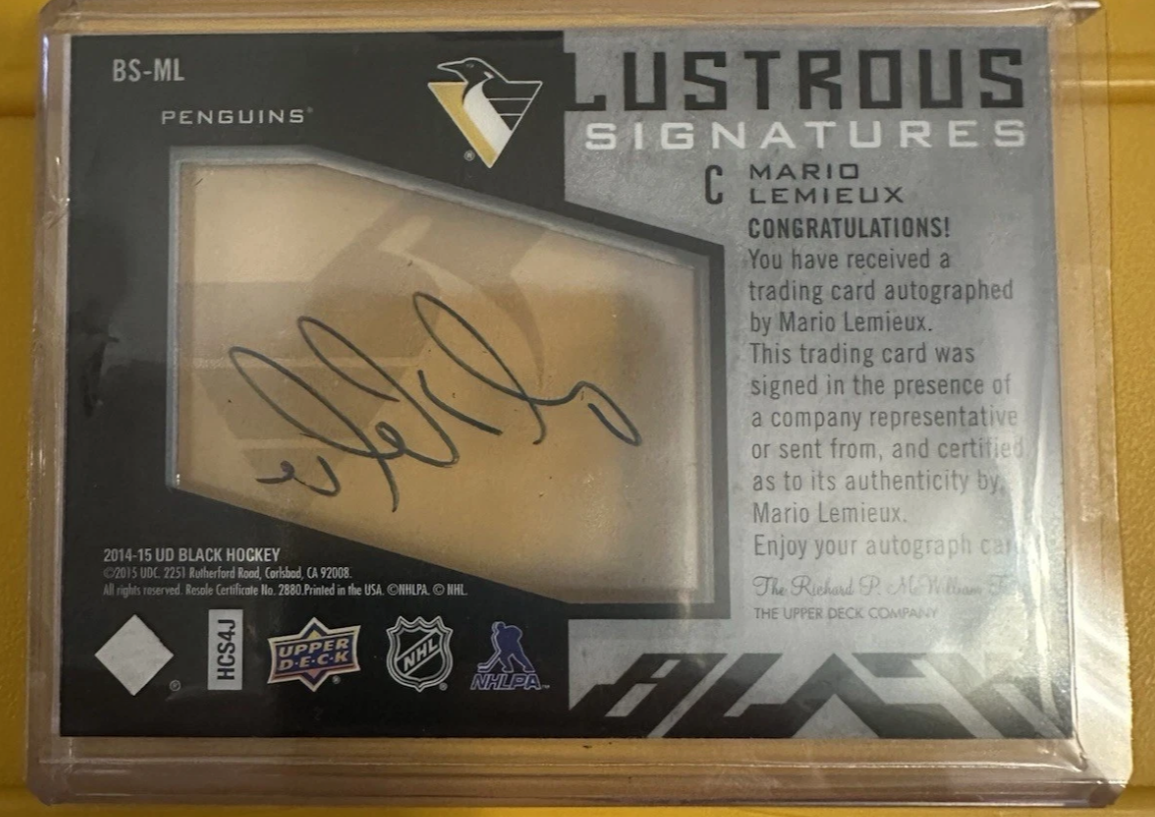 2014-15 Upper Deck Black Lustrous Mario Lemieux #BSML Penguins /25 On Card Auto