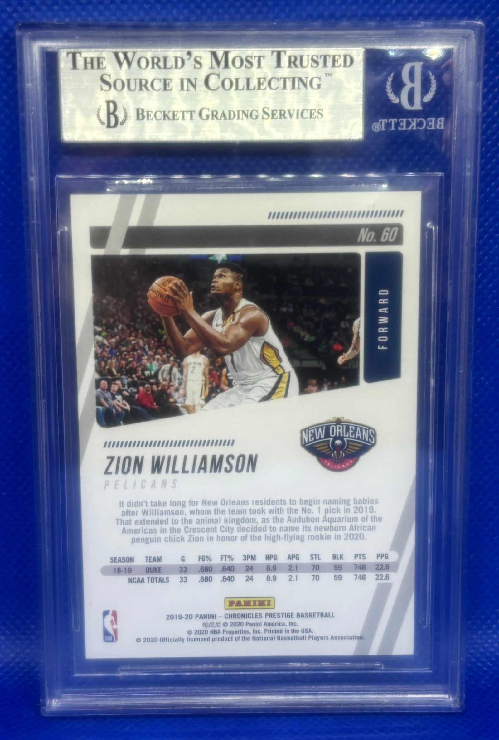 2019-20 Panini Chronicles Zion Williamson Rookie RC Prestige GOLD /10 BGS 9 Mint
