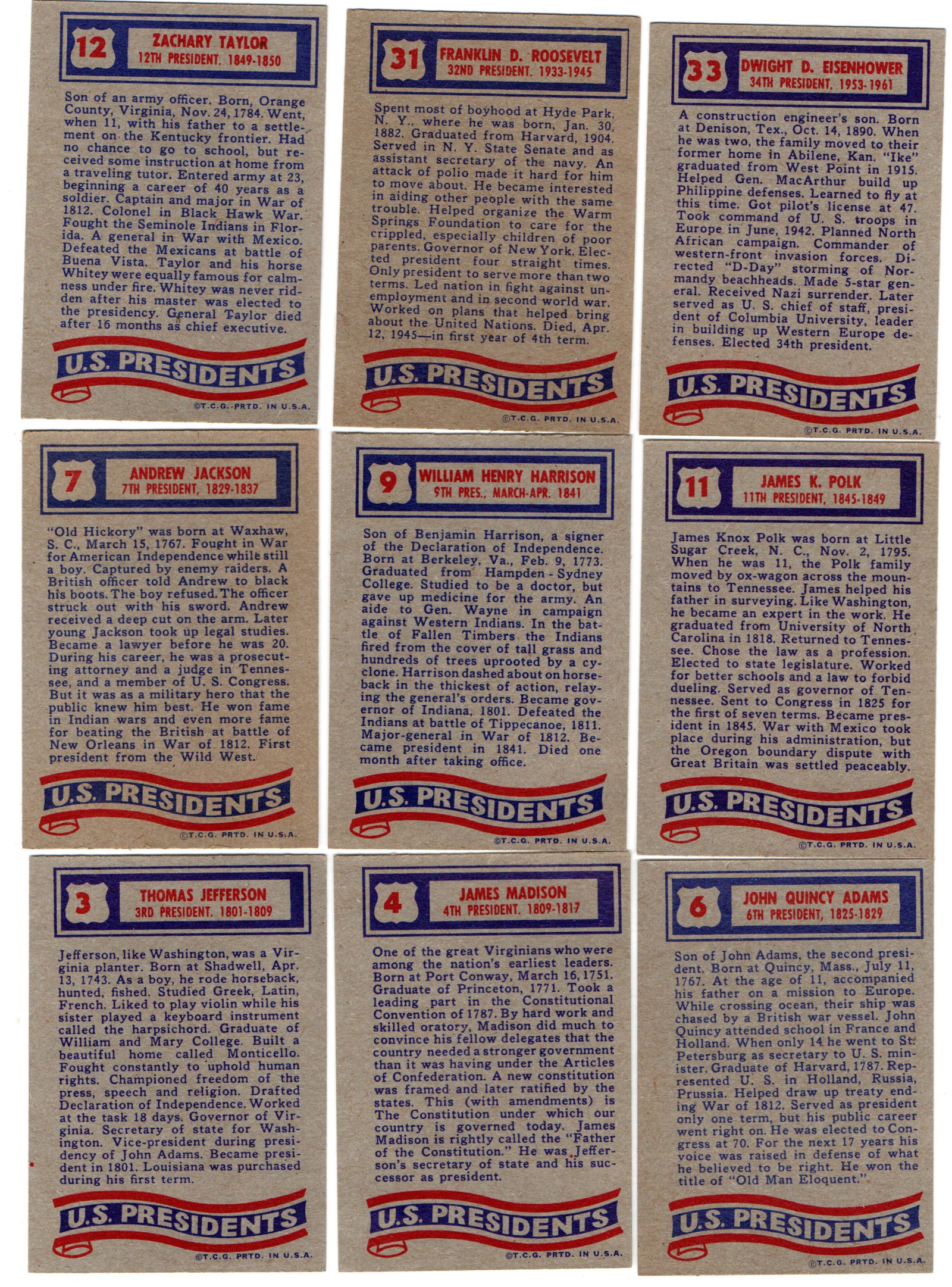1972 Topp U. S Presidents Non Sport Cards Lot of 27 Each Mid Grade