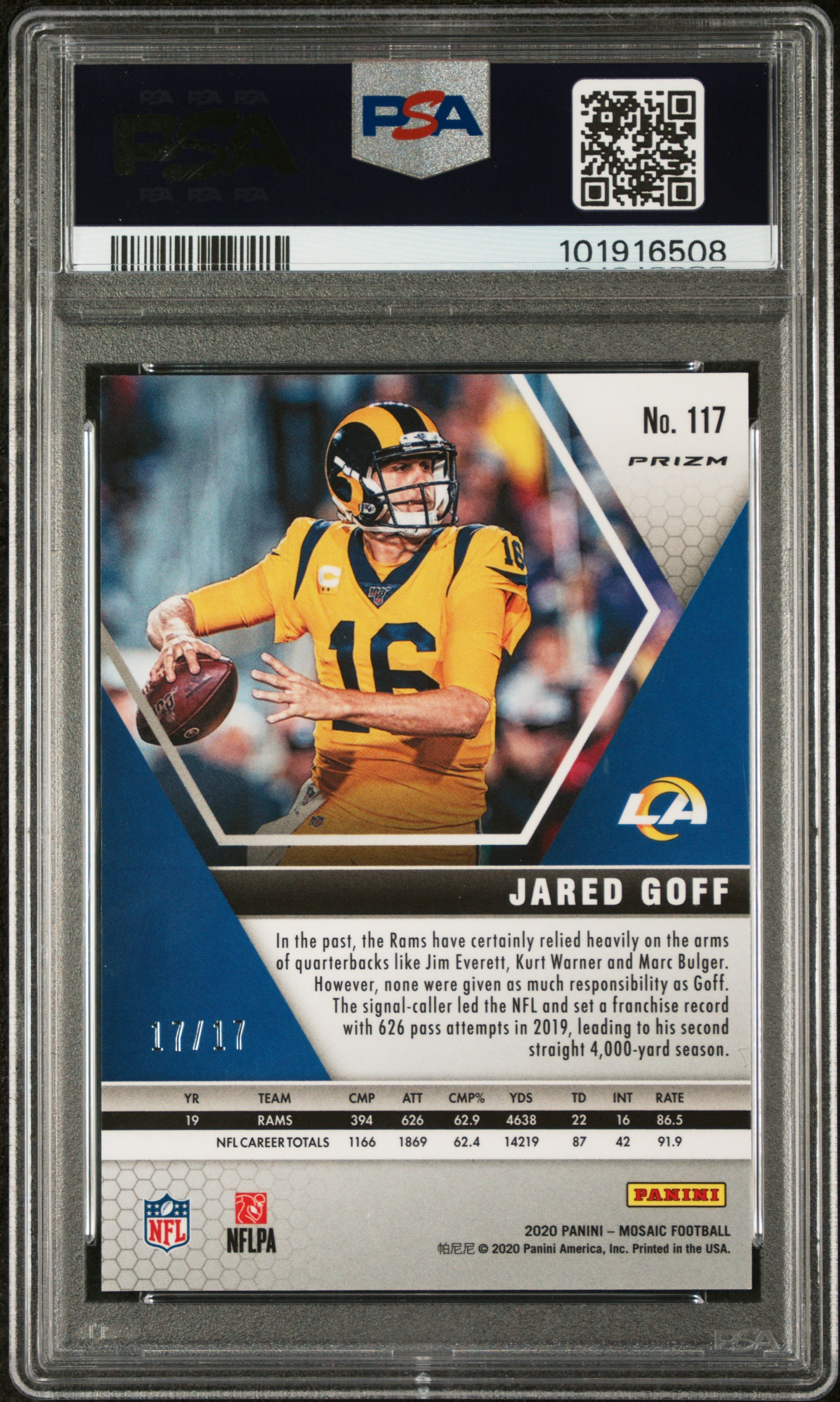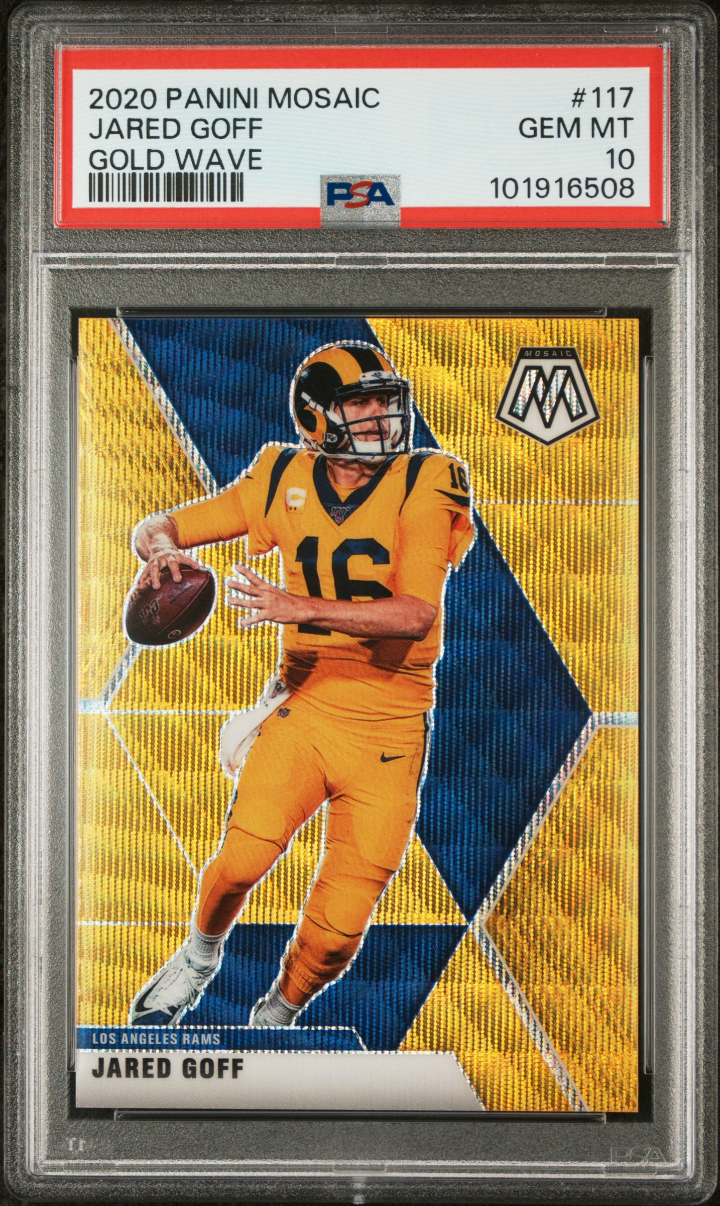 Jared Goff 2020 Panini Mosaic Gold Wave /17 PSA 10 Gem Mint