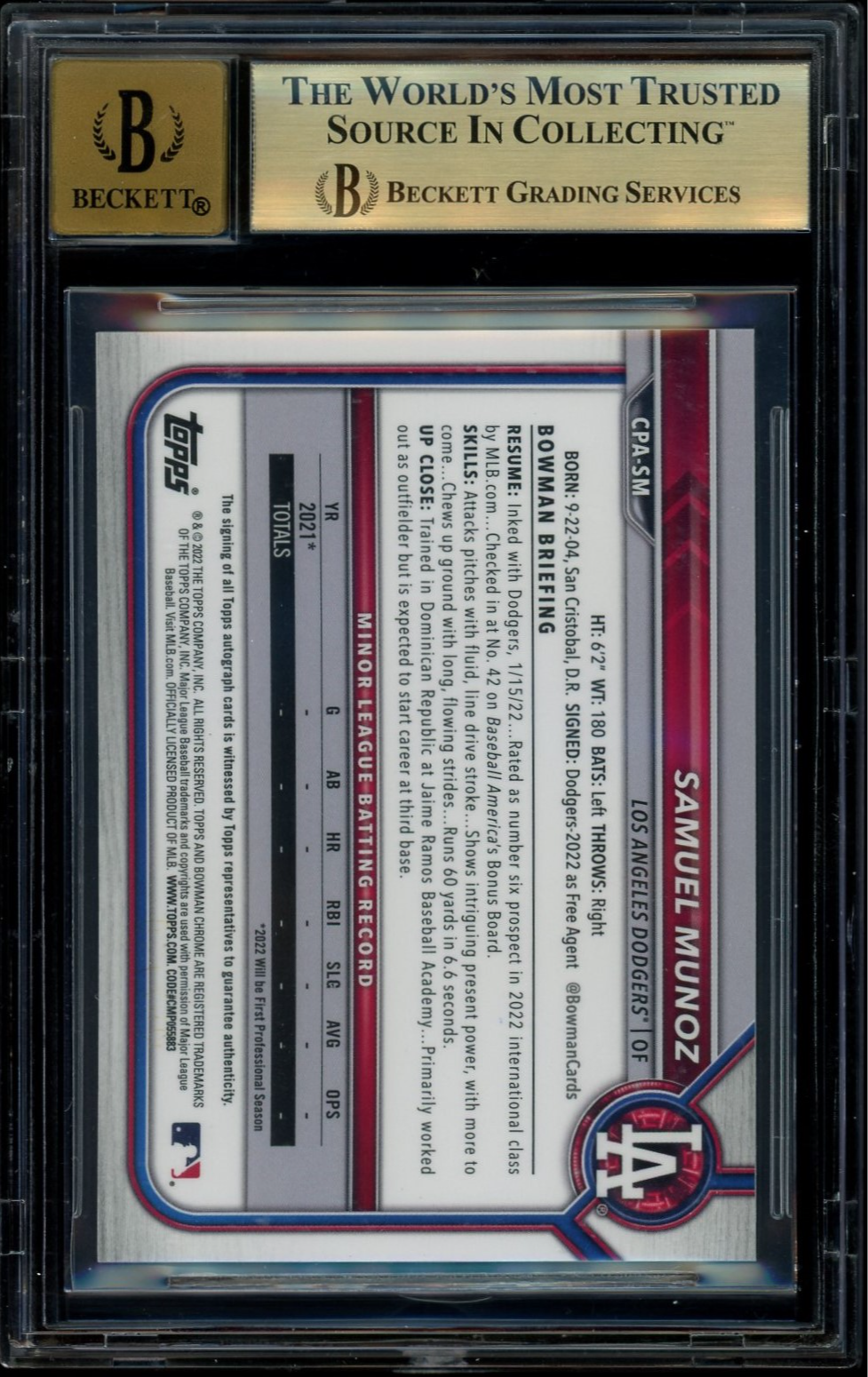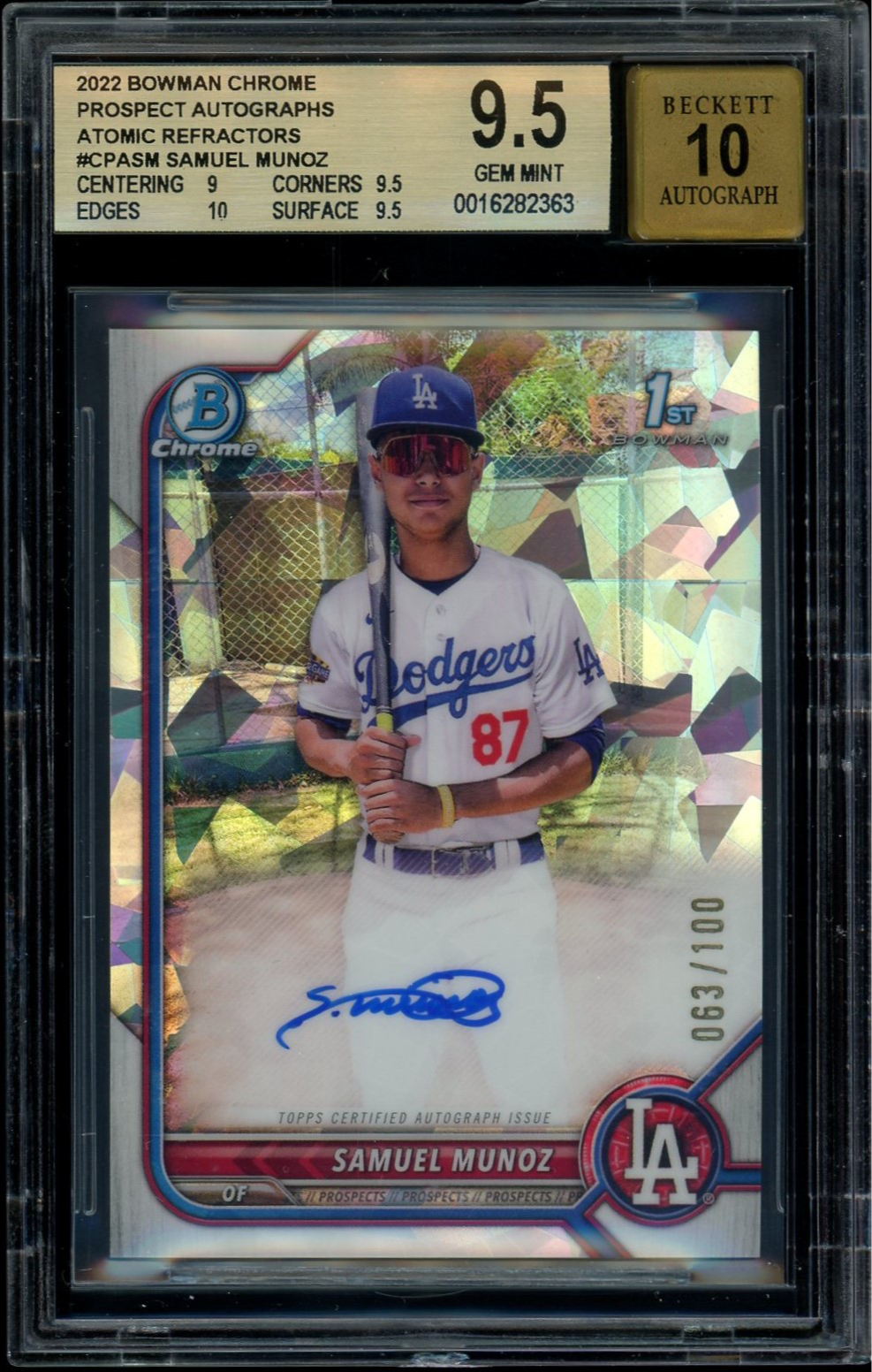 2022 Bowman Chrome SAMUEL MUNOZ Atomic Refractor 1st Rookie AUTO /100 BGS 9.5/10 Gem Mint