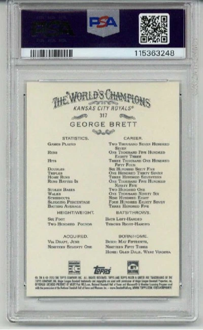 2013 TOPPS ALLEN & GINTER #317 GEORGE BRETT KANSAS CITY ROYALS PSA 10 LOW POP