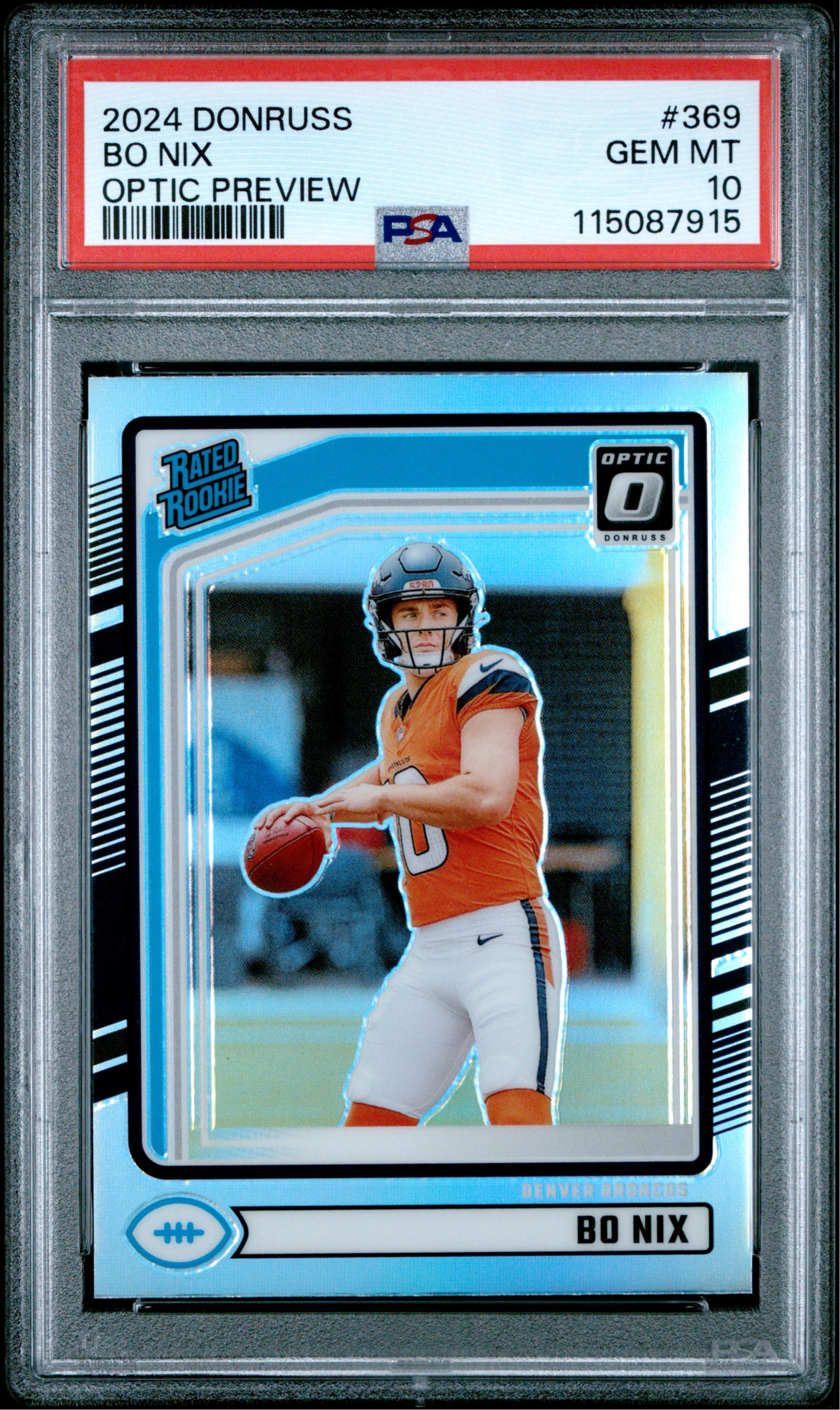 2024 DONRUSS OPTIC #369 BO NIX OPTIC PREVIEW RATED ROOKIE HOLO ROOKIE RC PSA 10