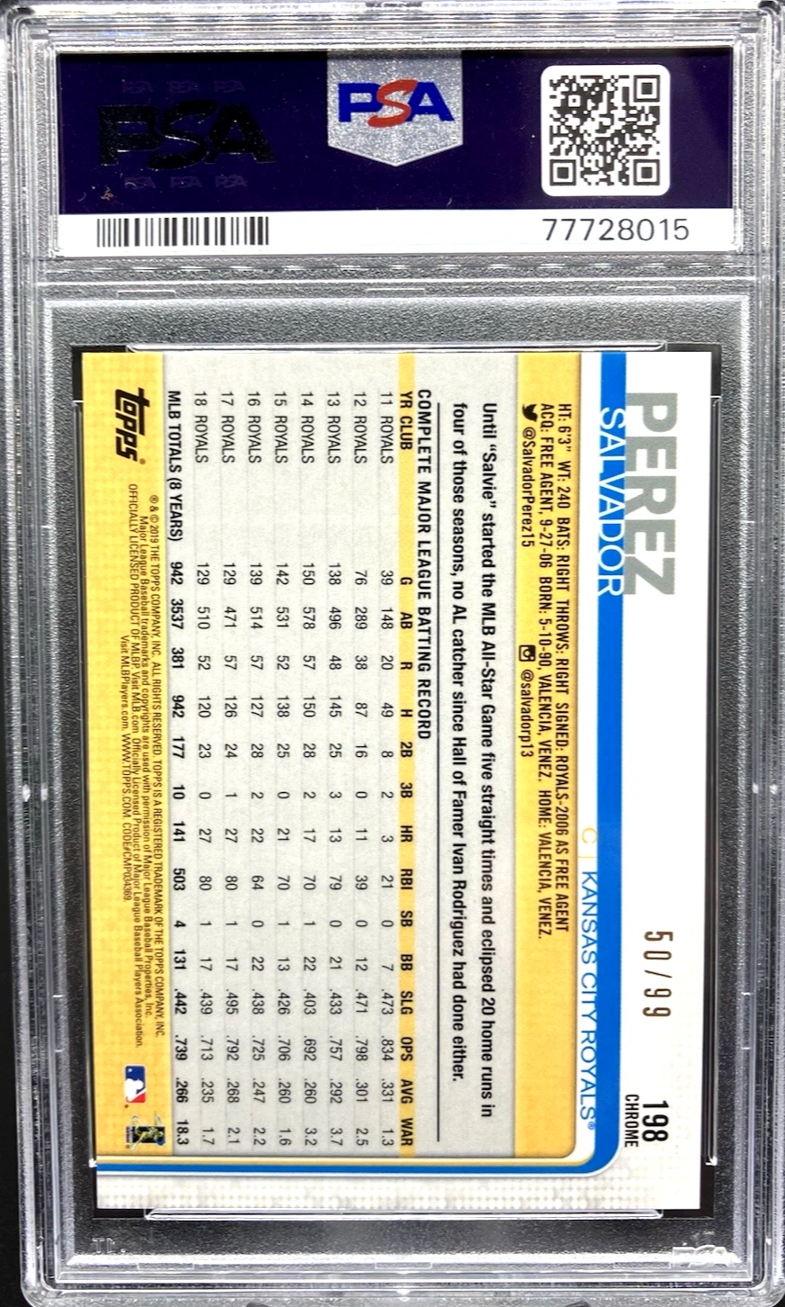 2019 Topps Chrome Salvador Perez Green Refractor #50/99 * PSA 9 MINT * Royals
