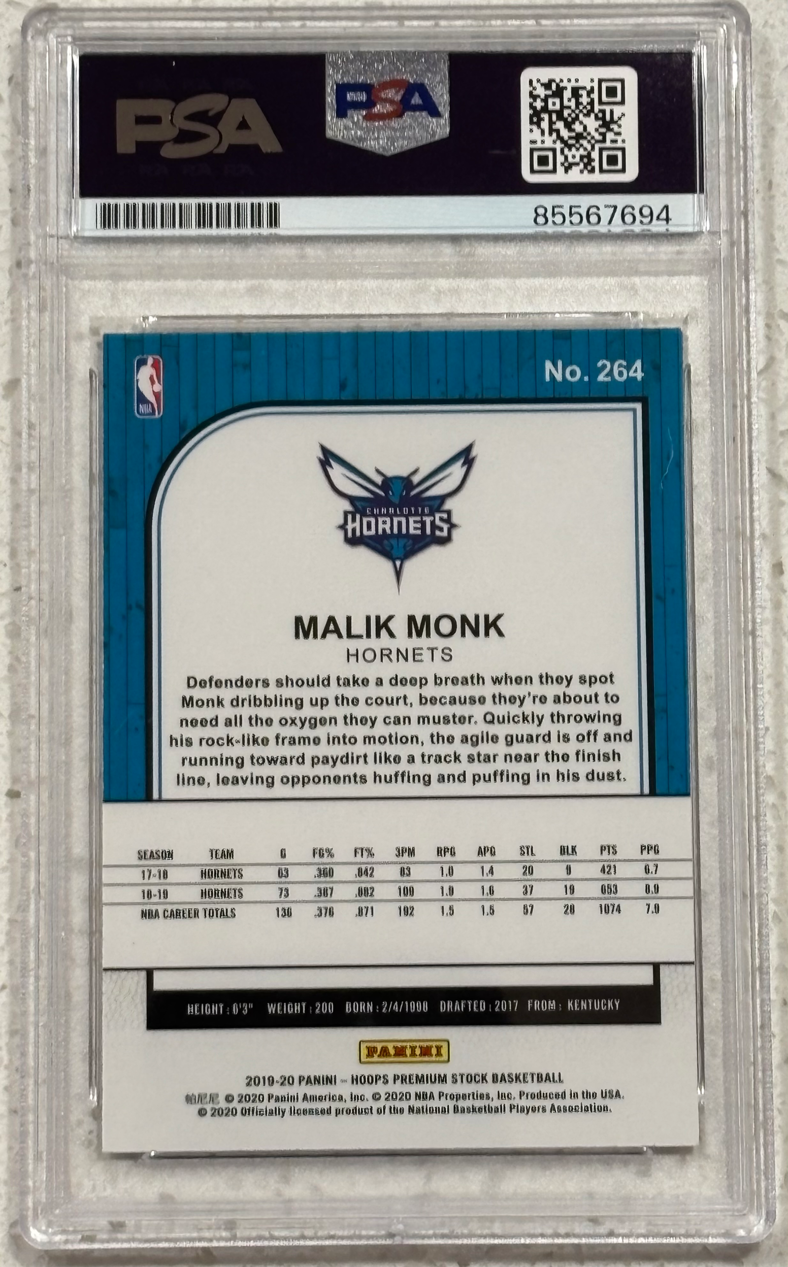 2019-20 Panini NBA Hoops Premium #264 Malik Monk signed PSA Authentic Auto Charlotte Hornets