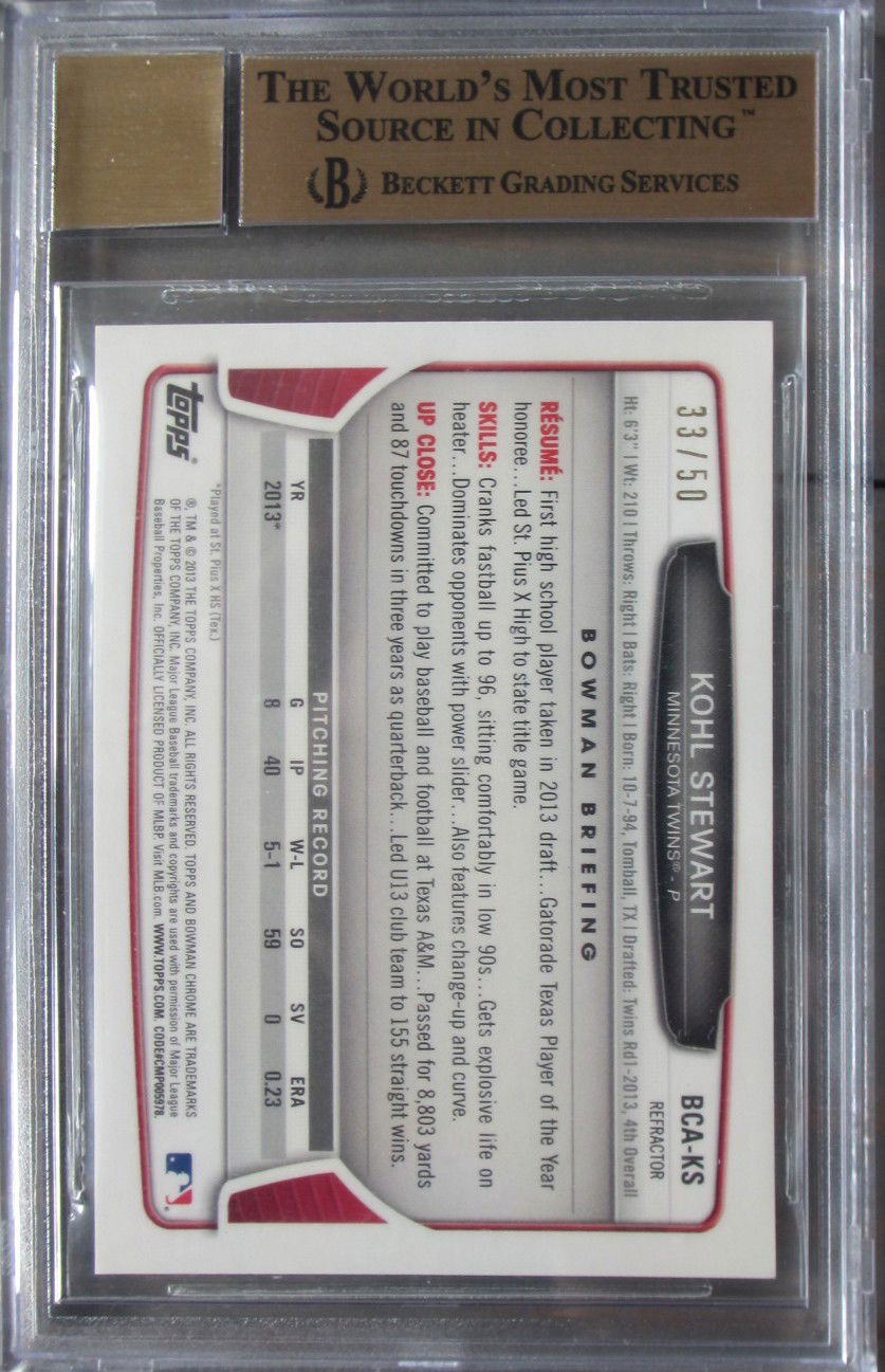 Kohl Stewart 2013 Bowman Chrome Draft Auto Black Wave #/50 BGS 9.5 Gem Mint+