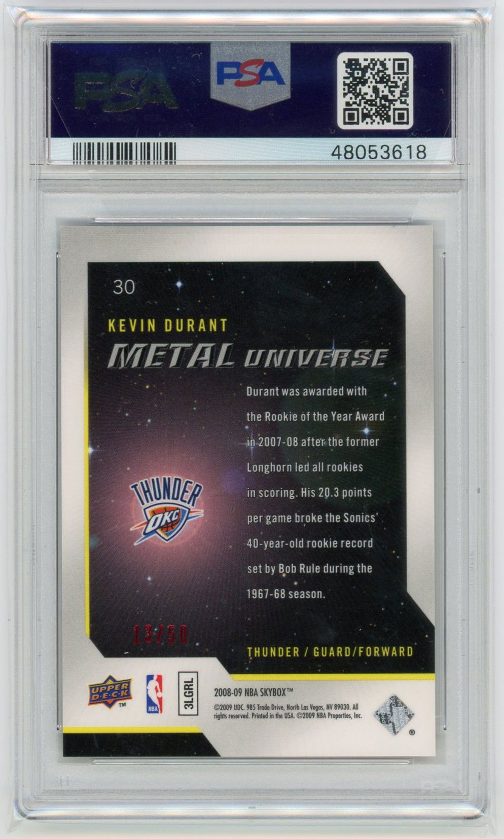 2008 Metal Universe Precious Metal Gems PMG Red Kevin Durant /50 PSA 8