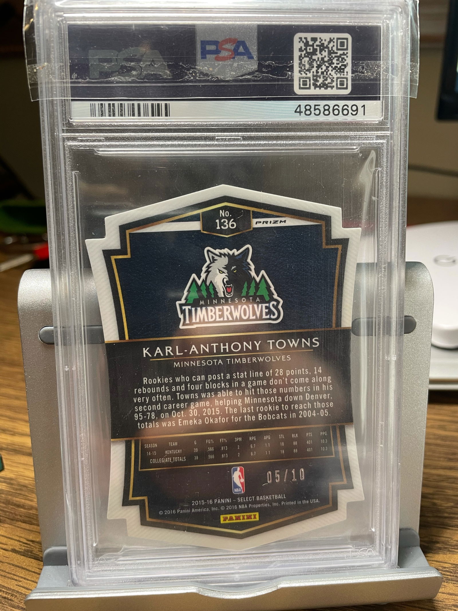 2015 Karl Anthony Towns Panini Select Premier Gold Prizm Die Cut / 10 PSA 10