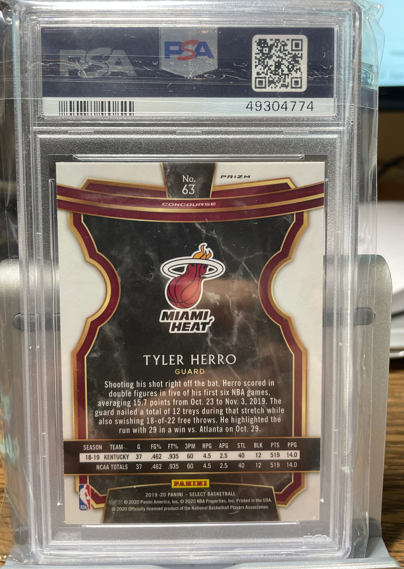 2019 Tyler Herro Panini Select Premier Silver PSA 10
