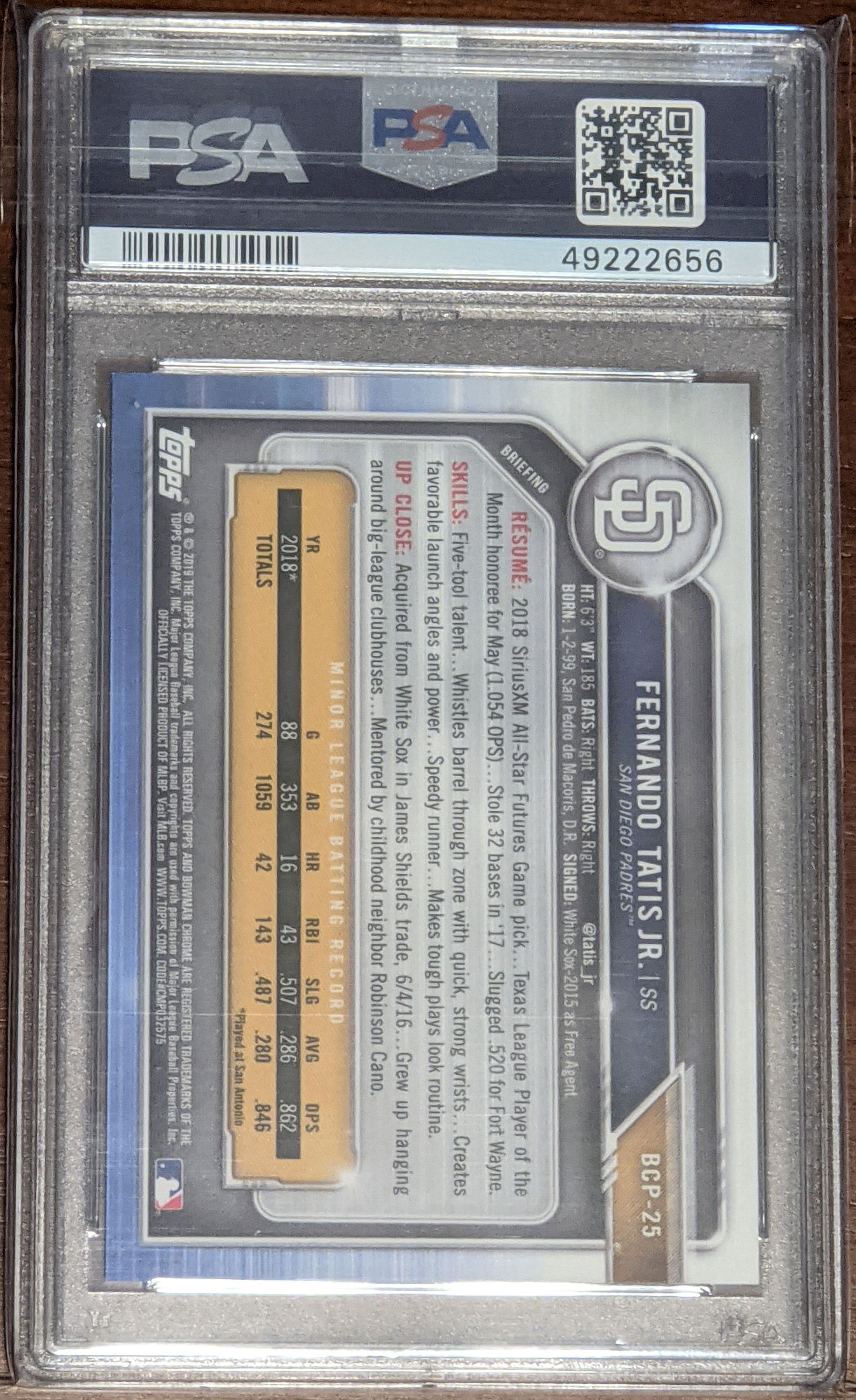 2019 Bowman Chrome Aqua Refractor Fernando Tatis Jr. RC PSA 10 071/125
