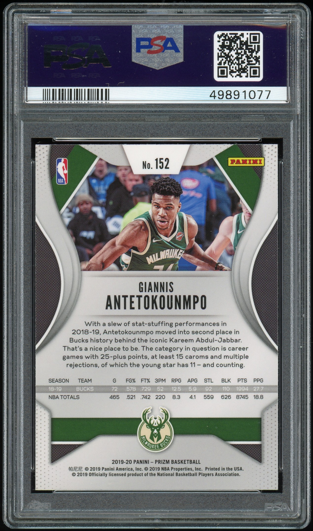 2019 Prizm #152 Giannis Antetokounmpo PSA 9