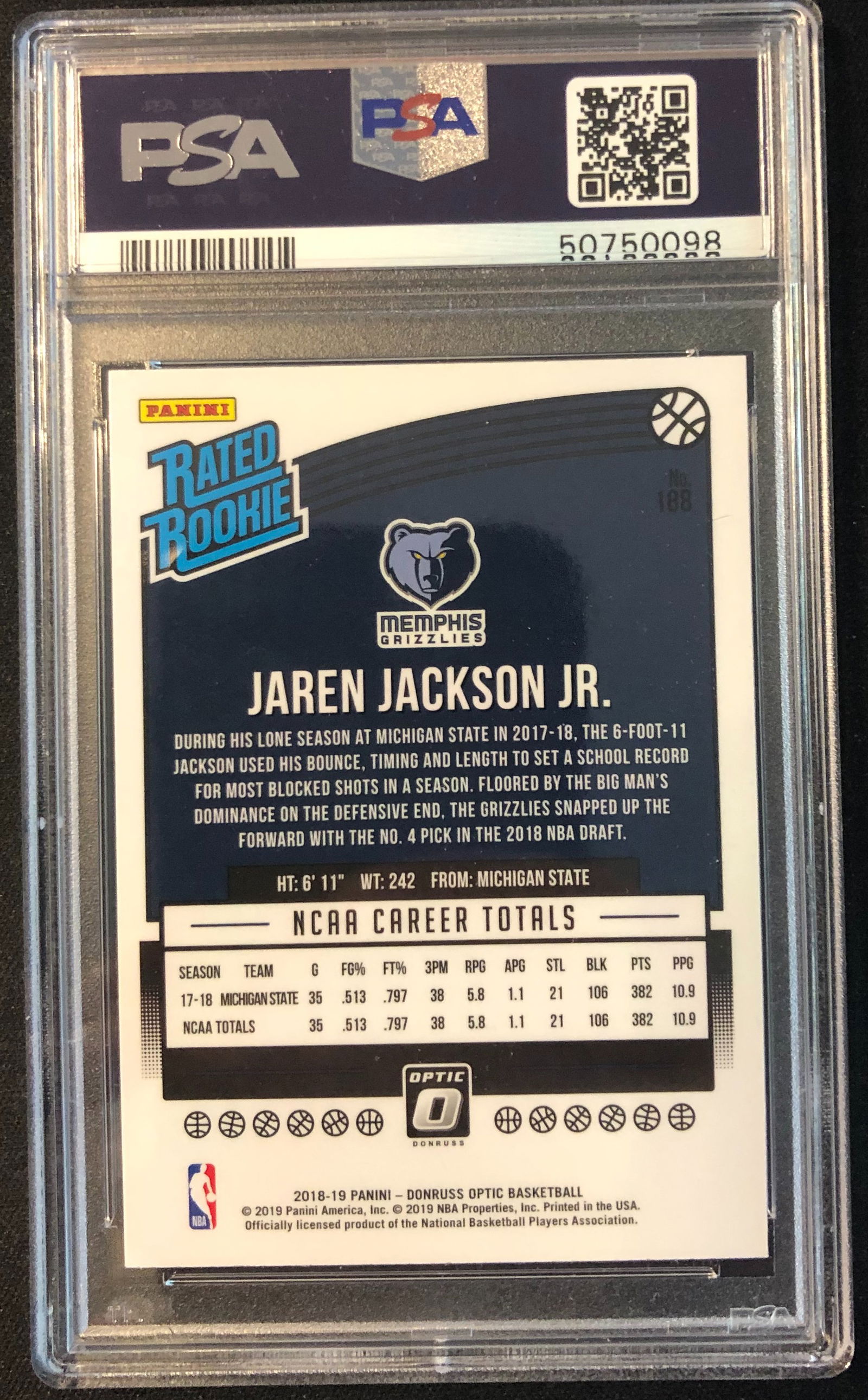 2018 Donruss Optic #188 Jaren Jackson Jr Rated Rookie RC PSA 9 Mint Grizz