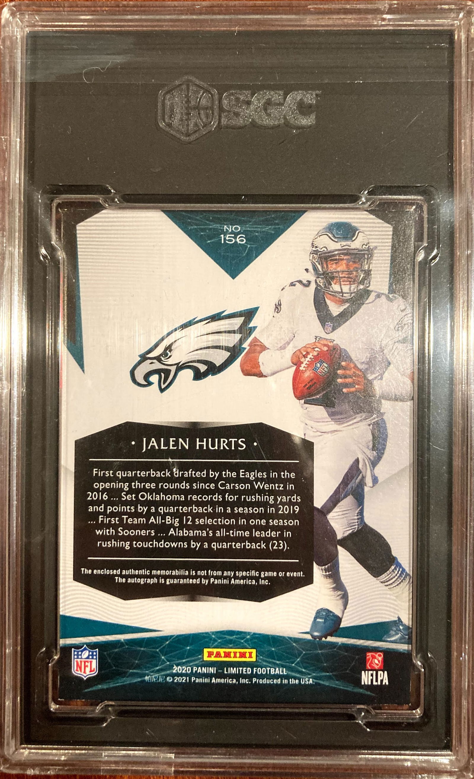 Jalen Hurts RPA rookie patch auto 2020 Panini Limited Silver /49 SGC 8.5