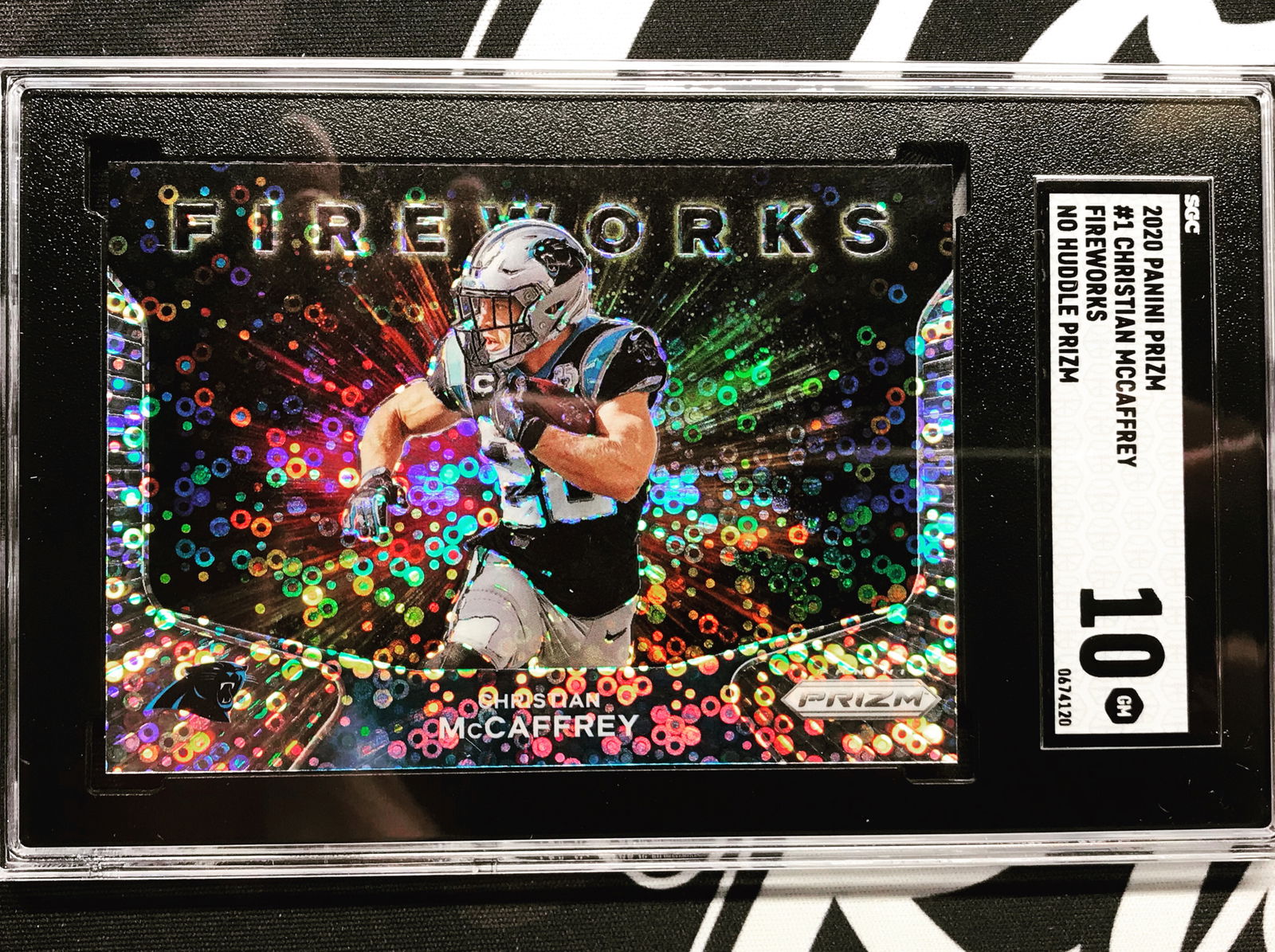 2020 Panini Prizm Christian McCaffrey No Huddle Fireworks Prizm SGC 10