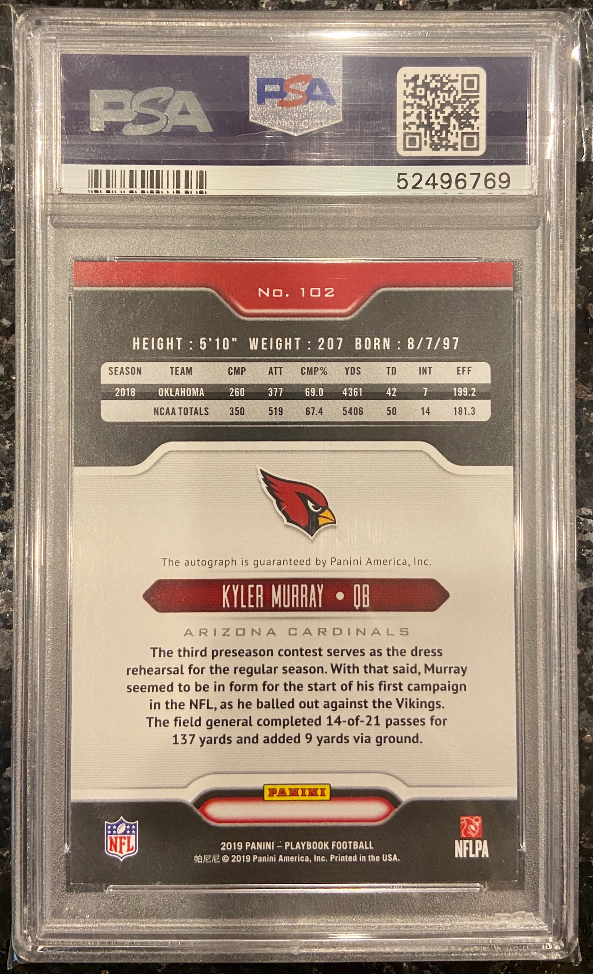 2019 Panini Playbook KYLER MURRAY AUTO Rookie RC #102 Blue 21/35 PSA 8
