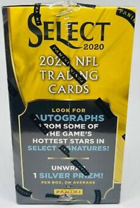 2020 Panini Select Football Blaster Box. Brand New, Factory Sealed. 6 packs per box, 4 cards per pack. Exclusive Tri-color Prizm Die-cuts.