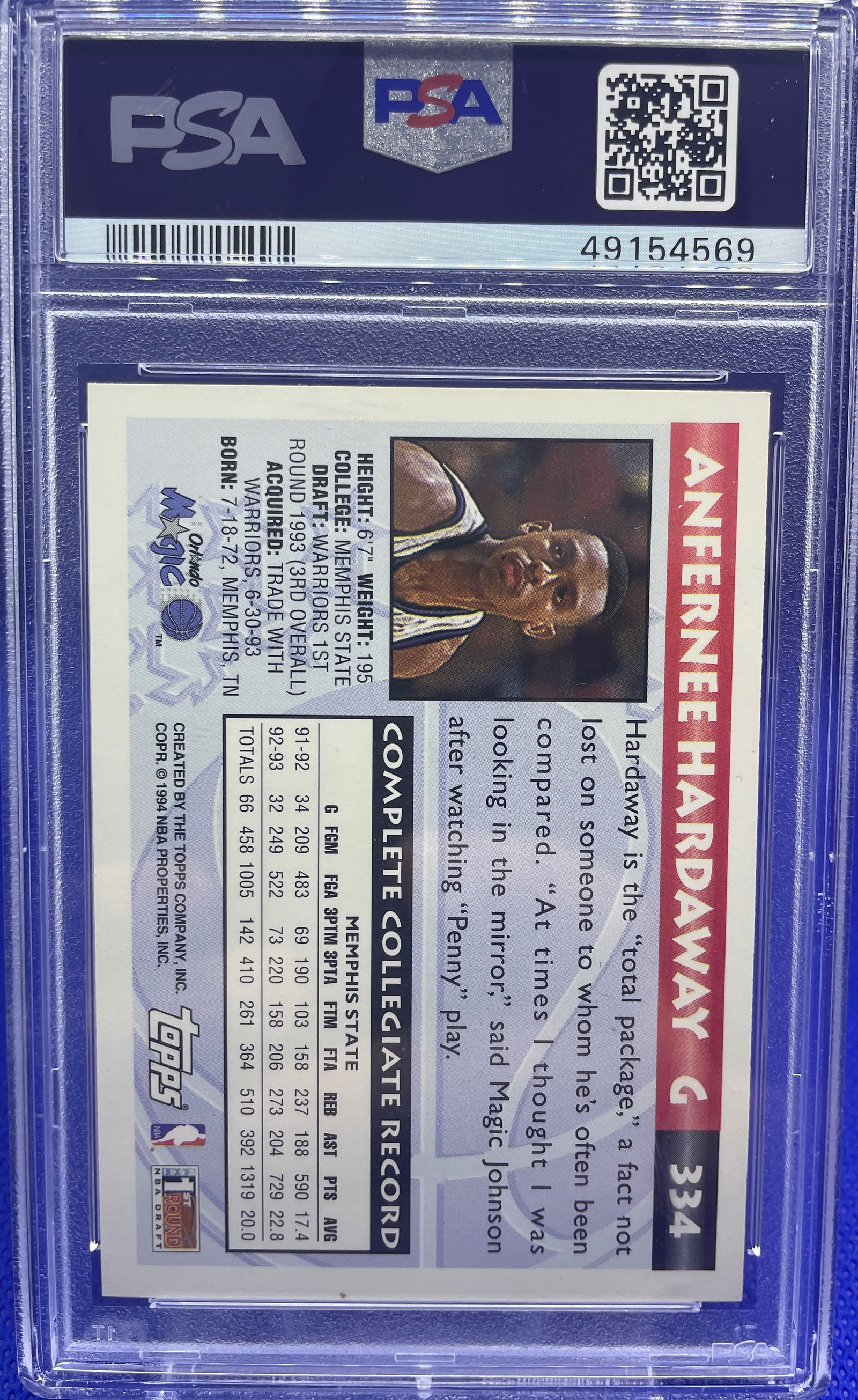 1993 TOPPS GOLD ANFERNEE HARDAWAY RC #334 PSA 7 NM NEAR MINT PENNY MAGIC LOW POP