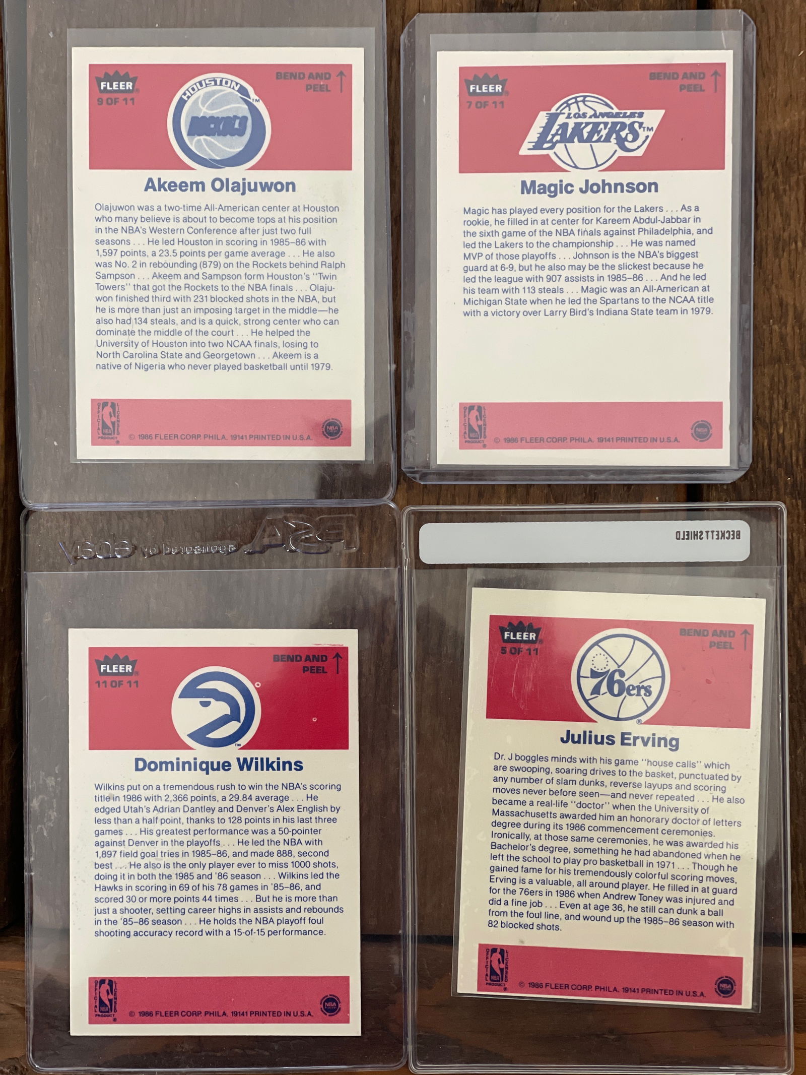1986 Fleer Sticker Lot Magic, Erving, Olajuwon, Wilkins