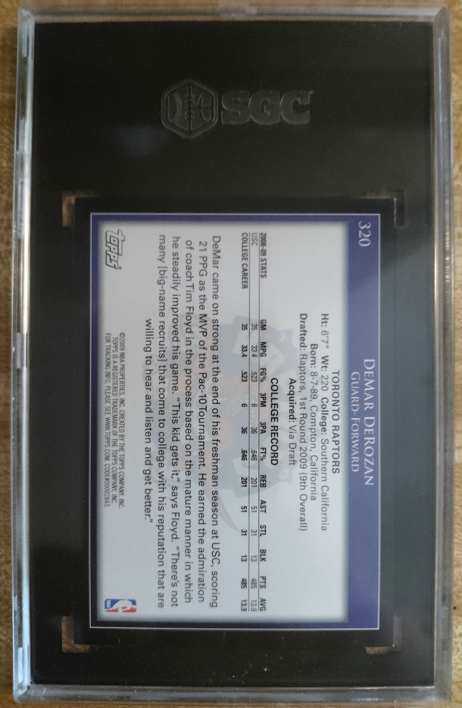 Fresh grade. 2009-10 Topps DeMar DeRozan Rookie Card RC #320. Chicago Bulls Toronto Raptors Grade: SGC 8.5