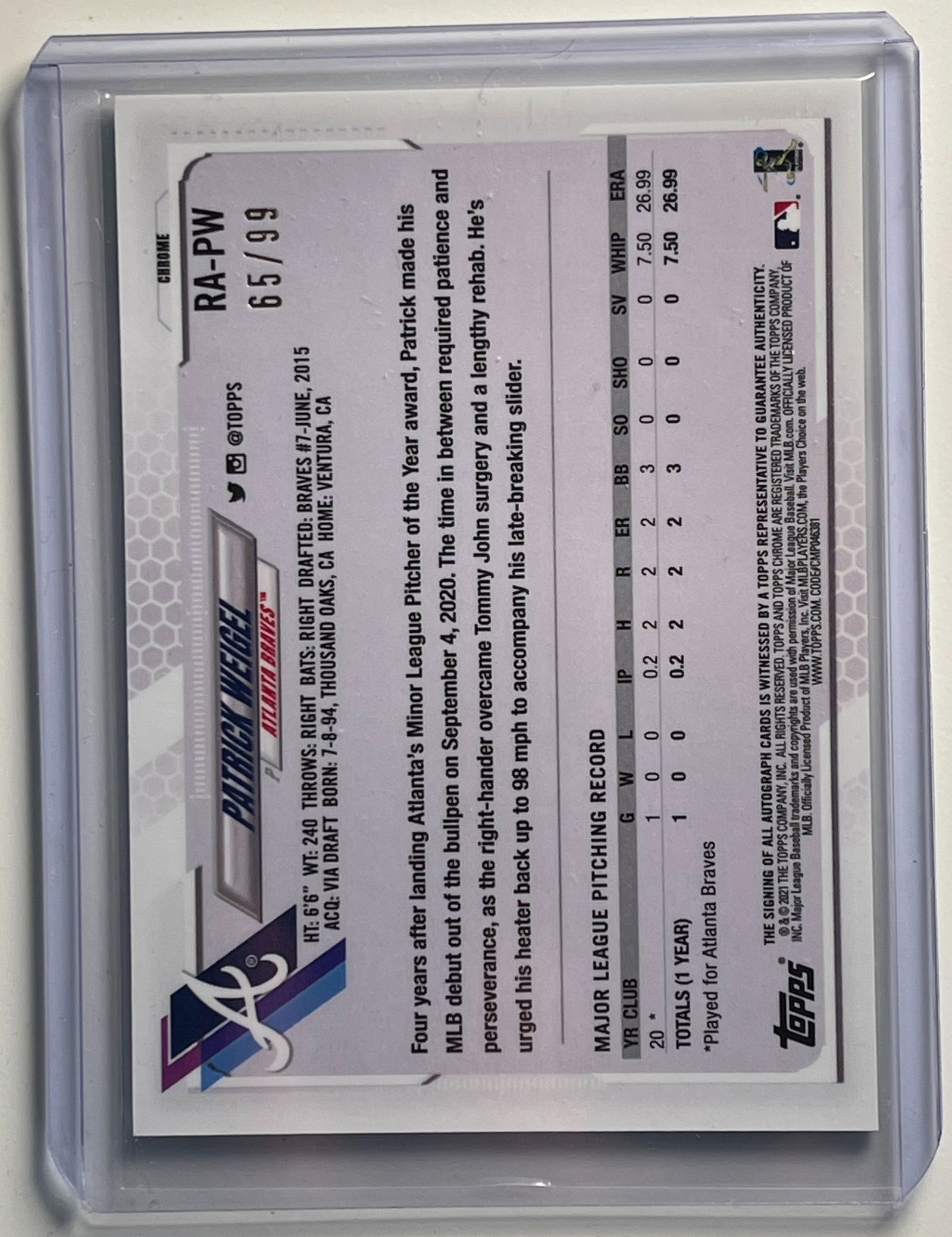 2021 Topps Chrome Patrick Wiegel Auto /99