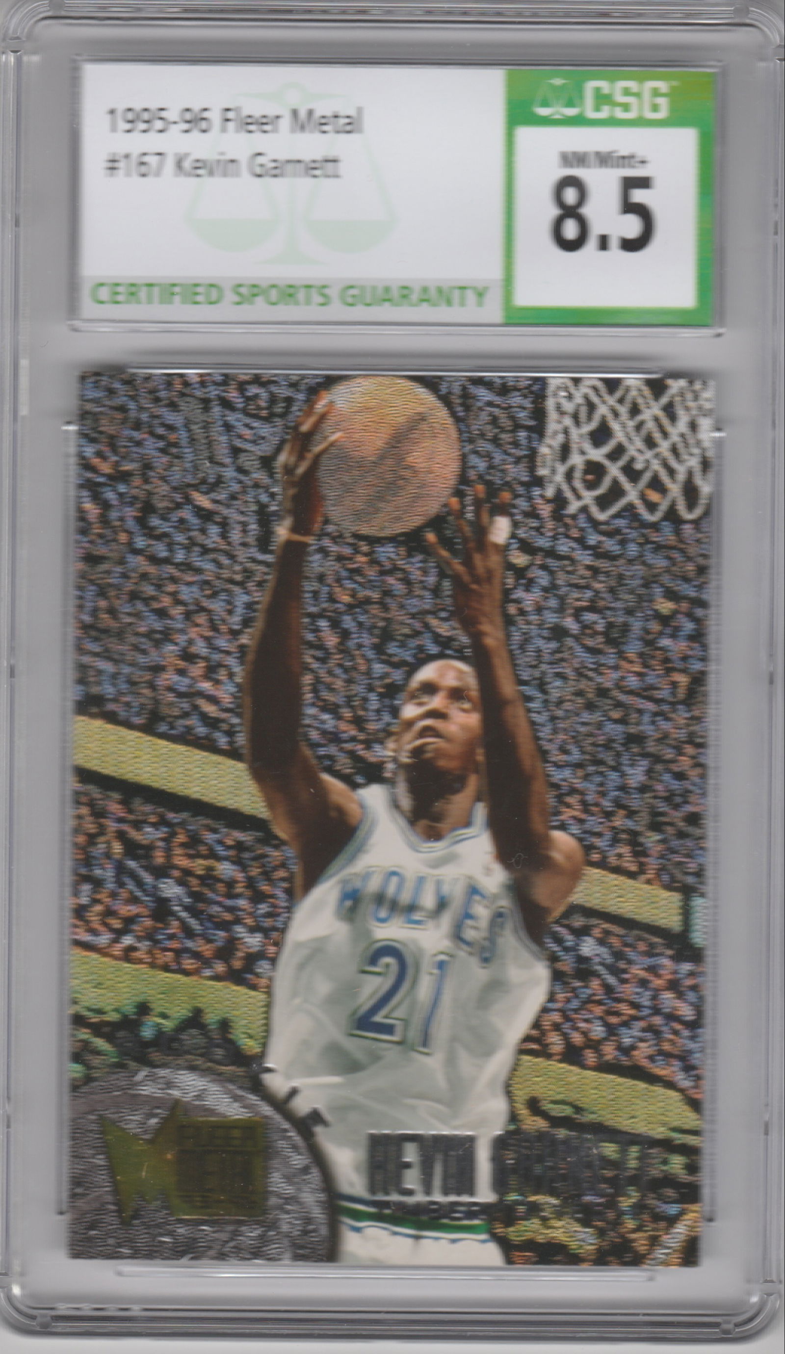 1995-96 Fleer Metal Rookie KEVIN GARNETT Rc CSG 8.5 *TWolves* Nm-Mint+