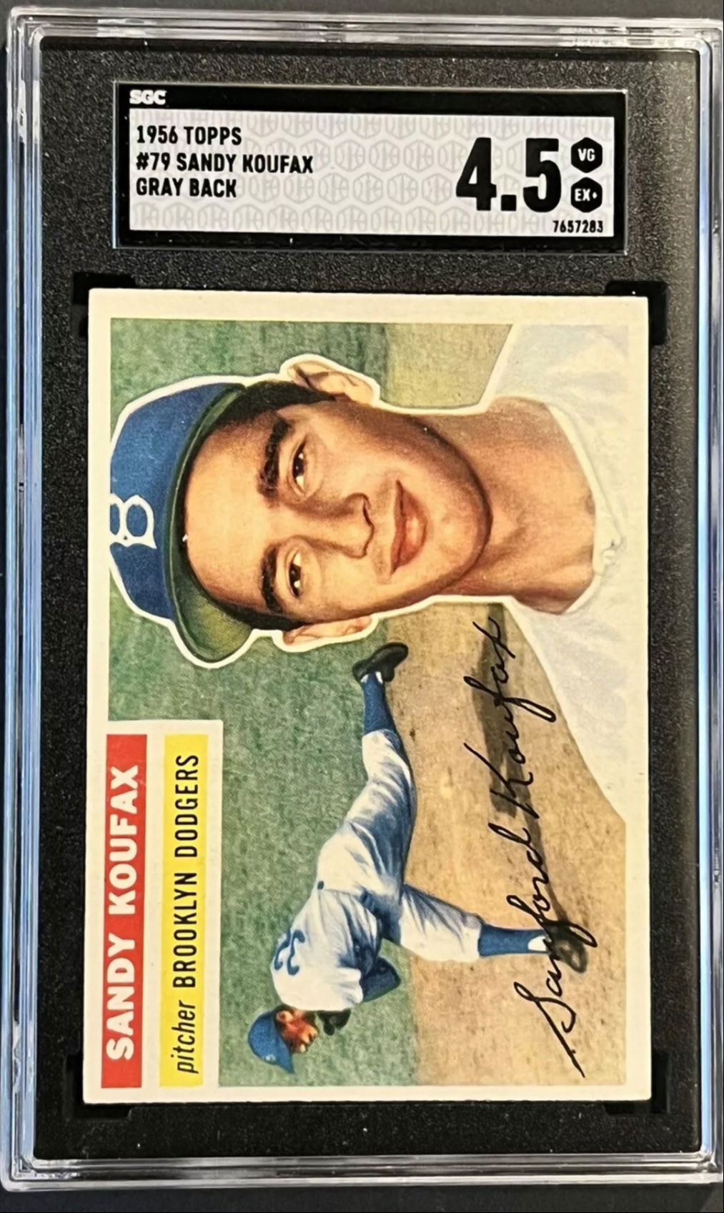 1956 Topps Dodgers HOF Sandy Koufax #79 - 2nd Year Grey Back - New Slab SGC 4.5